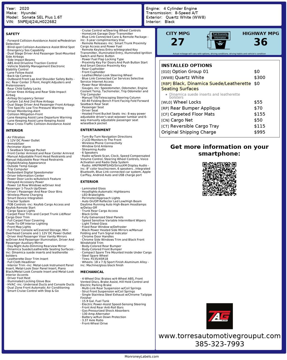 Practicality is not forgotten- as the Sonata comes with all-season fitted liners- ensuring that the interior remains pristine under various weather conditions. This thoughtful inclusion highlights Hyundai's commitment to quality and attention to detail in every aspect of the vehicle. Overall- the 2020 Hyundai Sonata SEL Plus 1.6T is a standout choice for drivers seeking a harmonious blend of style- performance- and advanced features.