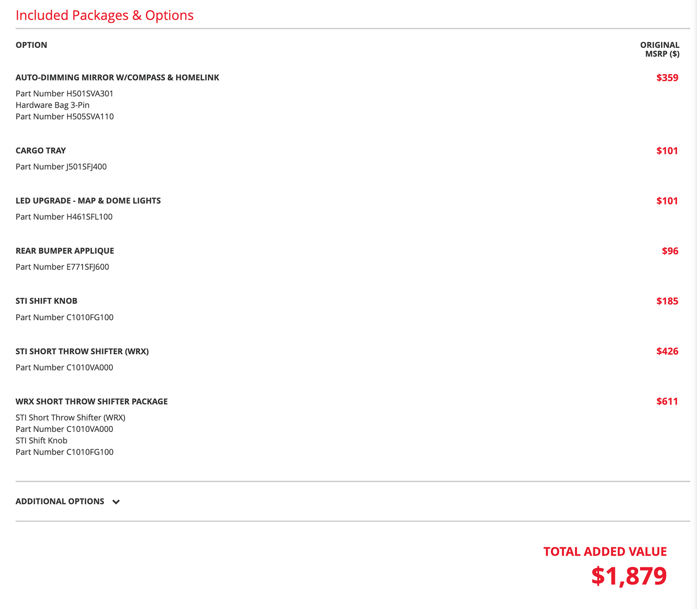 Inside- the cabin features a sleek Carbon Black interior- offering a comfortable and modern driving experience. The car comes equipped with a manual transmission- enhanced by the WRX Short Throw Shifter Package for a more engaging drive. Additionally- the STI Short Throw Shifter (WRX) and STI Shift Knob provide a sporty feel- making every shift precise and enjoyable.