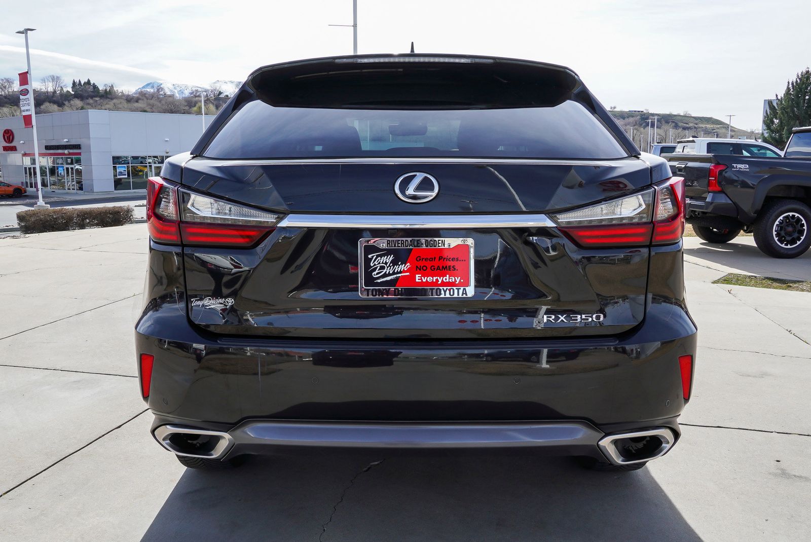 IIHS Top Safety Pick . Only 76,928 Miles! Boasts 26 Highway MPG and 19 City MPG! This Lexus RX delivers a Regular Unleaded V-6 3.5 L/211 engine powering this Automatic transmission. Wireless Phone Connectivity, Wheels: 18 x 8 7-Spoke Aluminum, Valet Function. This Lexus RX Features the Following Options Trunk/Hatch Auto-Latch, Trip Computer, Transmission: 8-Speed Automatic -inc: Electronically Controlled Transmission (ECT), Transmission w/Driver Selectable Mode and Sequential Shift Control, Tracker System, Tires: P235/65R18 M S, Tailgate/Rear Door Lock Included w/Power Door Locks, Strut Front Suspension w/Coil Springs, Streaming Audio, Steel Spare Wheel. The Votes are Counted IIHS Top Safety Pick , KBB.com 10 Best Luxury SUVs, KBB.com Best Resale Value Awards, KBB.com Brand Image Awards. Stop By Today For a must-own Lexus RX come see us at Tony Divino Toyota , 777 West Riverdale Rd, Riverdale, UT 84405. Just minutes away! * Estimated Monthly Payment will depend on vehicle make and model and will be determined upon actual vehicle inspection. All payments are estimates. Tax, title, registration and documentation fee ($349) are extra.* While every reasonable effort is made to ensure the accuracy of this information, we are not responsible for any errors or omissions contained on these pages. Please verify any information in question with Tony Divino Toyota.