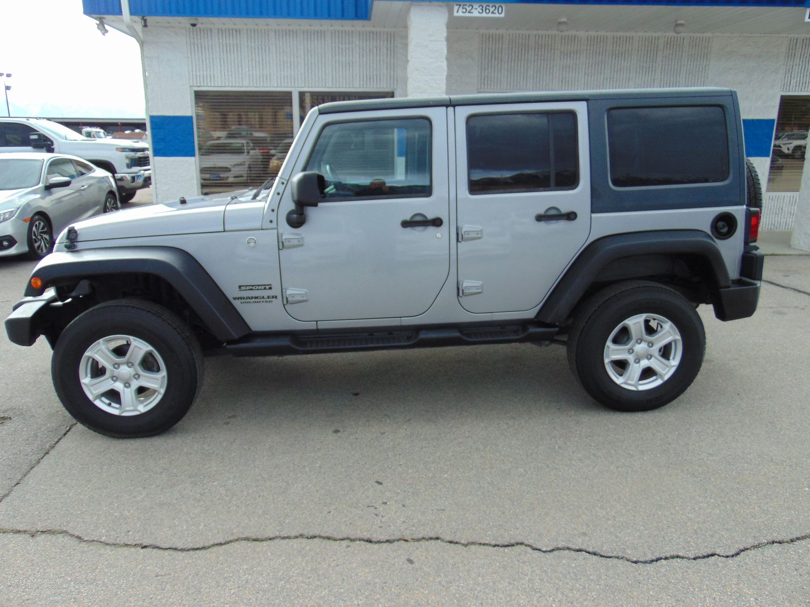 CARFAX 1-OWNER AND NO ACCIDENTS REPORTED ON THIS 2013 JEEP WRANGLER UNLIMITED SPORT 4X4 HARDTOP WITH THE 3.6L V6 MOTOR, AUTOMATIC TRANSMISSION, AND ONLY 95,008 MILES. THIS WRANGLER COMES EQUIPPED WITH CHARCOAL GRAY CLOTH INTERIOR, 5 PASSENGER SEATING, POWER WINDOWS, LOCKS, AND MIRRORS, TILT, CRUISE, A/C, AM/FM/XM CD PLAYER, BLUETOOTH, AUX. PORT, STEERING WHEEL AUDIO CONTROLS, ALLOY WHEELS, GOOD TIRES, HARD TOP, AND MUCH MORE!! THIS WRANGLER IS IN EXCELLENT CONDITION INSIDE AND OUT!! IT IS ON A CLEAN TITLE AND ACTUAL MILES.