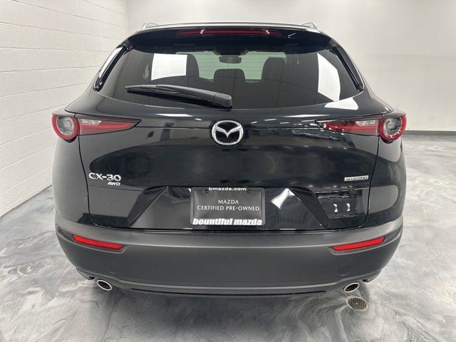 2025 Mazda CX-30 2.5 S Preferred Package Jet Black Mica AWD SKYACTIV® 2.5L 4-Cylinder DOHC 16V 6-Speed AutomaticMazda Certified Pre-Owned Certified, 4-Wheel Disc Brakes, 6 Speakers, ABS brakes, Air Conditioning, Alloy wheels, AM/FM radio, AppLink/Apple CarPlay and Android Auto, Auto High-beam Headlights, Automatic temperature control, Brake assist, Bumpers: body-color, Cargo Cover, Compass, Delay-off headlights, Driver door bin, Driver vanity mirror, Dual front impact airbags, Dual front side impact airbags, Electronic Stability Control, Emergency communication system: Mazda Connected Services (3-year trial subscription included), Exterior Parking Camera Rear, Front anti-roll bar, Front Bucket Seats, Front Center Armrest, Front dual zone A/C, Front reading lights, Front wheel independent suspension, Fully automatic headlights, Heated door mirrors, Heated Front Bucket Seats, Heated front seats, Illuminated entry, Knee airbag, Leather Shift Knob, Leather steering wheel, Leatherette Seat Trim, Low tire pressure warning, MAZDA CONNECT Infotainment System, Memory seat, Occupant sensing airbag, Outside temperature display, Overhead airbag, Overhead console, Panic alarm, Passenger door bin, Passenger vanity mirror, Power door mirrors, Power driver seat, Power moonroof, Power steering, Power windows, Radio data system, Radio: AM/FM Audio System, Rain sensing wipers, Rear seat center armrest, Rear side impact airbag, Rear window defroster, Rear window wiper, Remote keyless entry, Speed control, Speed-sensing steering, Split folding rear seat, Spoiler, Steering wheel mounted audio controls, Tachometer, Telescoping steering wheel, Tilt steering wheel, Traction control, Trip computer, Turn signal indicator mirrors, Variably intermittent wipers, Wheel Locks, Wheels: 18 x 7J Aluminum Alloy.Certified. Mazda Certified Pre-Owned Details:* Powertrain Limited Warranty: 84 Month/100,000 Mile (whichever comes first) from original in-service date* Includes Autocheck Vehicle History Report with 3 Year Buyback Protection. 3 month SiriusXM trial subscription.* Transferable Warranty* Limited Warranty: 12 Month/12,000 Mile (whichever comes first) after new car warranty expires or from certified purchase date* Vehicle History* Roadside Assistance* 160 Point Inspection* Warranty Deductible: $0Odometer is 11321 miles below market average!CALL OUR SALES DEPARTMENT TODAY (801) 397-2277 FOR MORE DETAILS AND TO MAKE SURE THE VEHICLE IS STILL AVAILABLE.