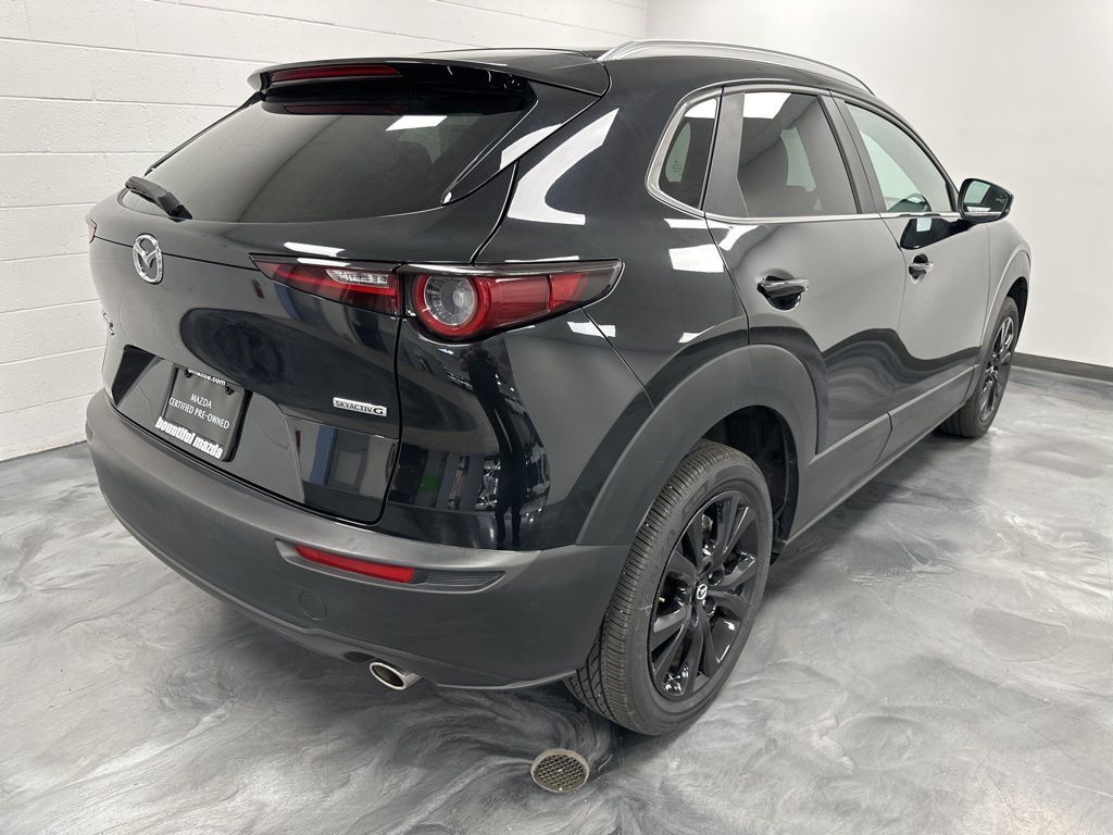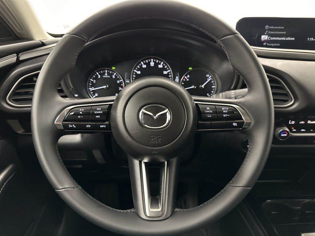 Mazda Certified Pre-Owned Certified, 4-Wheel Disc Brakes, 6 Speakers, ABS brakes, Air Conditioning, Alloy wheels, AM/FM radio, AppLink/Apple CarPlay and Android Auto, Auto High-beam Headlights, Automatic temperature control, Brake assist, Bumpers: body-color, Cargo Cover, Compass, Delay-off headlights, Driver door bin, Driver vanity mirror, Dual front impact airbags, Dual front side impact airbags, Electronic Stability Control, Emergency communication system: Mazda Connected Services (3-year trial subscription included), Exterior Parking Camera Rear, Front anti-roll bar, Front Bucket Seats, Front Center Armrest, Front dual zone A/C, Front reading lights, Front wheel independent suspension, Fully automatic headlights, Heated door mirrors, Illuminated entry, Knee airbag, Leather Shift Knob, Leather steering wheel, Leatherette Seat Trim, Low tire pressure warning, MAZDA CONNECT Infotainment System, Occupant sensing airbag, Outside temperature display, Overhead airbag, Overhead console, Panic alarm, Passenger door bin, Passenger vanity mirror, Power door mirrors, Power steering, Power windows, Radio data system, Radio: AM/FM Audio System, Rain sensing wipers, Rear seat center armrest, Rear side impact airbag, Rear window defroster, Rear window wiper, Remote keyless entry, Speed control, Speed-sensing steering, Split folding rear seat, Spoiler, Steering wheel mounted audio controls, Tachometer, Telescoping steering wheel, Tilt steering wheel, Traction control, Trip computer, Turn signal indicator mirrors, Variably intermittent wipers, Wheels: 18'' x 7J Aluminum Alloy.