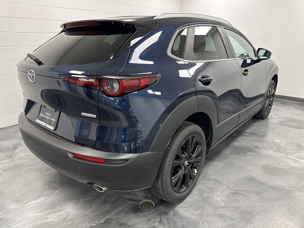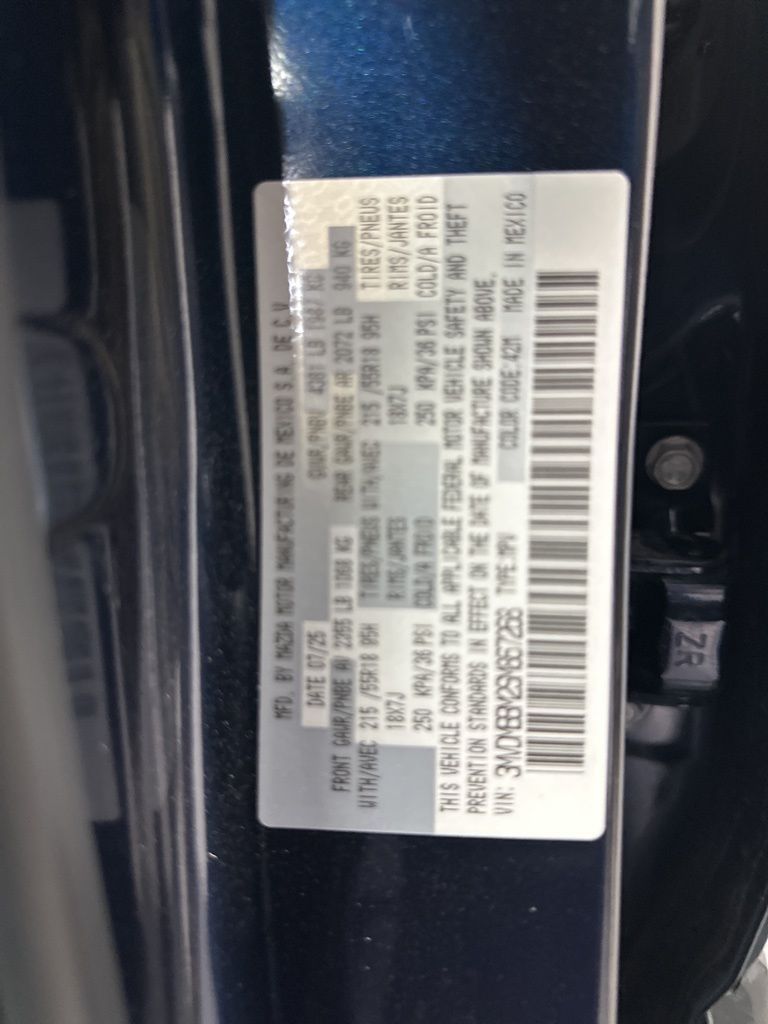 Mazda Certified Pre-Owned Certified, 4-Wheel Disc Brakes, 6 Speakers, ABS brakes, Air Conditioning, Alloy wheels, AM/FM radio, AppLink/Apple CarPlay and Android Auto, Auto High-beam Headlights, Automatic temperature control, Brake assist, Bumpers: body-color, Cargo Cover, Compass, Delay-off headlights, Driver door bin, Driver vanity mirror, Dual front impact airbags, Dual front side impact airbags, Electronic Stability Control, Emergency communication system: Mazda Connected Services (3-year trial subscription included), Exterior Parking Camera Rear, Front anti-roll bar, Front Bucket Seats, Front Center Armrest, Front dual zone A/C, Front reading lights, Front wheel independent suspension, Fully automatic headlights, Heated door mirrors, Illuminated entry, Knee airbag, Leather Shift Knob, Leather steering wheel, Leatherette Seat Trim, Low tire pressure warning, MAZDA CONNECT Infotainment System, Occupant sensing airbag, Outside temperature display, Overhead airbag, Overhead console, Panic alarm, Passenger door bin, Passenger vanity mirror, Power door mirrors, Power steering, Power windows, Radio data system, Radio: AM/FM Audio System, Rain sensing wipers, Rear seat center armrest, Rear side impact airbag, Rear window defroster, Rear window wiper, Remote keyless entry, Speed control, Speed-sensing steering, Split folding rear seat, Spoiler, Steering wheel mounted audio controls, Tachometer, Telescoping steering wheel, Tilt steering wheel, Traction control, Trip computer, Turn signal indicator mirrors, Variably intermittent wipers, Wheels: 18'' x 7J Aluminum Alloy.