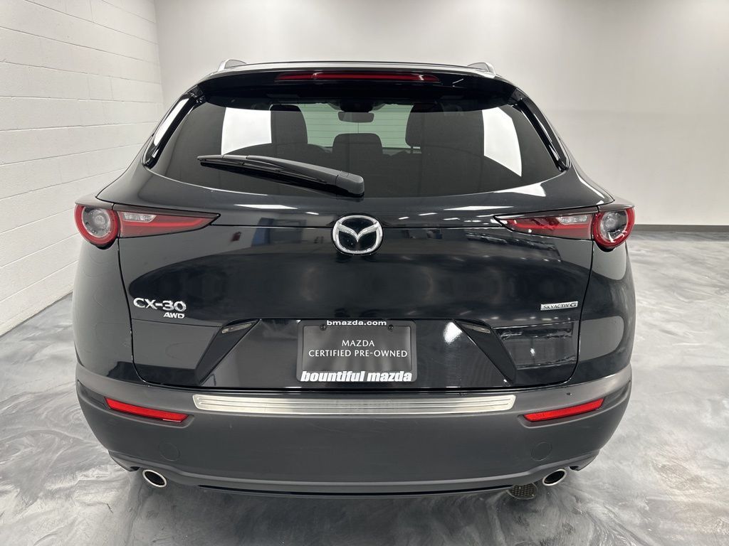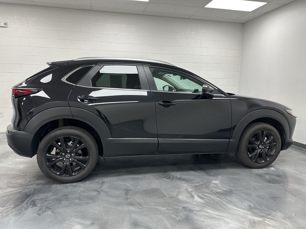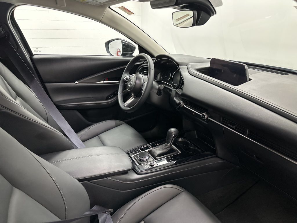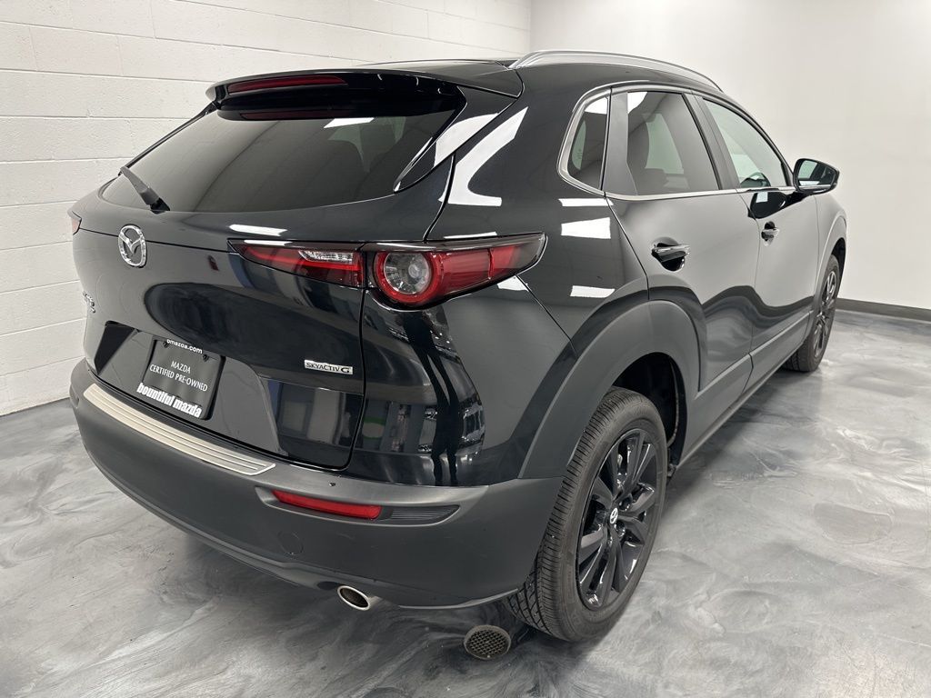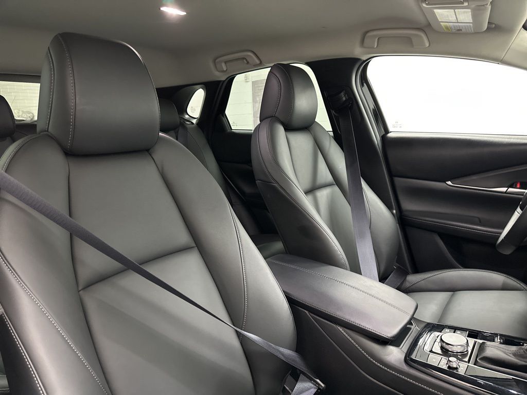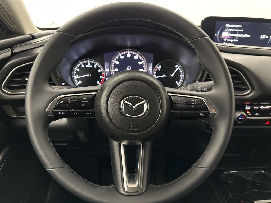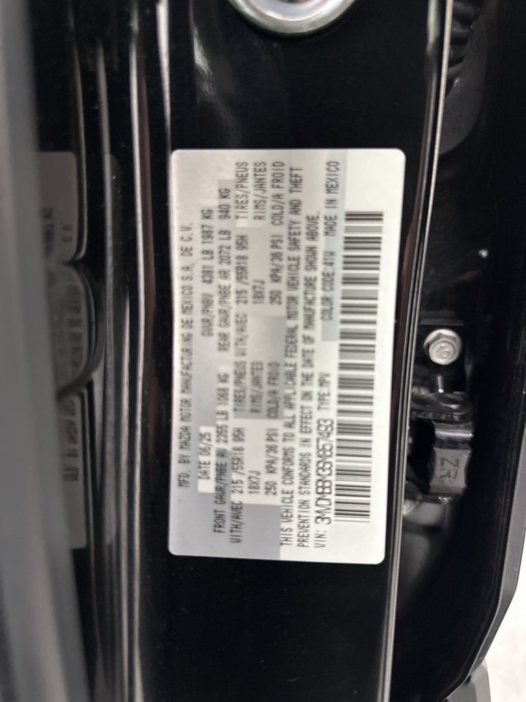 Mazda Certified Pre-Owned Certified, 4-Wheel Disc Brakes, 6 Speakers, ABS brakes, Air Conditioning, Alloy wheels, AM/FM radio, AppLink/Apple CarPlay and Android Auto, Auto High-beam Headlights, Automatic temperature control, Black Lug Nuts & Black Wheel Locks, Brake assist, Bumpers: body-color, Cargo Net, Compass, Delay-off headlights, Driver door bin, Driver vanity mirror, Dual front impact airbags, Dual front side impact airbags, Electronic Stability Control, Emergency communication system: Mazda Connected Services (3-year trial subscription included), Exterior Parking Camera Rear, Front anti-roll bar, Front Bucket Seats, Front Center Armrest, Front dual zone A/C, Front reading lights, Front wheel independent suspension, Fully automatic headlights, Heated door mirrors, Illuminated entry, Knee airbag, Leather Shift Knob, Leather steering wheel, Leatherette Seat Trim, Low tire pressure warning, MAZDA CONNECT Infotainment System, Occupant sensing airbag, Outside temperature display, Overhead airbag, Overhead console, Panic alarm, Passenger door bin, Passenger vanity mirror, Power door mirrors, Power steering, Power windows, Radio data system, Radio: AM/FM Audio System, Rain sensing wipers, Rear seat center armrest, Rear side impact airbag, Rear window defroster, Rear window wiper, Remote keyless entry, Speed control, Speed-sensing steering, Split folding rear seat, Spoiler, Stainless Steel Rear Bumper Guard, Steering wheel mounted audio controls, Tachometer, Telescoping steering wheel, Tilt steering wheel, Traction control, Trip computer, Turn signal indicator mirrors, Variably intermittent wipers, Wheels: 18'' x 7J Aluminum Alloy.