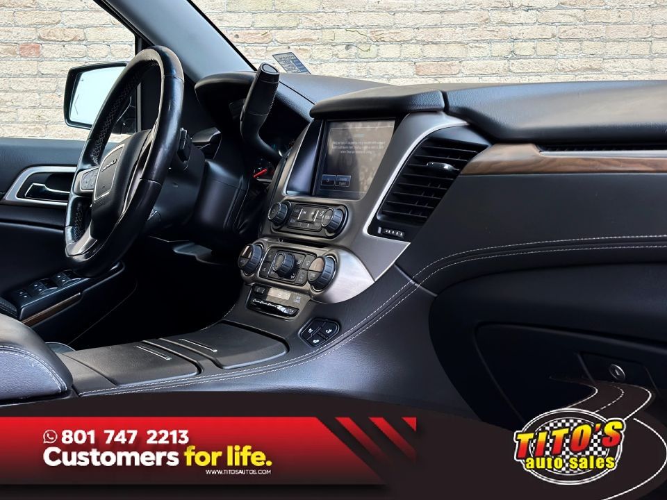 Navigation System,Traction Control,Power Windows,SiriusXM Satellite,Head-Up Display,Automatic 10-Spd w/Overdrive,F&R Park Assist,Tilt & Telescoping Wheel,Dual Power Seats,Air Conditioning Rear,Running Boards,StabiliTrak,OnStar,AM/FM/HD Radio,Side Air Bags,Leather,Lane Keep Assist,Hill Start Assist,Daytime Running Lights,Power Door Locks,Power Steering,Cruise Control,F&R Head Curtain Air Bags,Bose Surround Sound,CD/MP3 (Single Disc),ABS (4-Wheel),Bluetooth Wireless,Heated & Ventilated Seats,Fog Lights,HID Headlamps,V8 EcoTec3 6.2 Liter,Dual Air Bags,Towing Pkg,Keyless Entry,4WD,Power Liftgate Release,Backup Camera,Air Conditioning,Oversized Premium Wheels 20 ,Keyless Start,Theft Deterrent System,Blind Zone Alert
