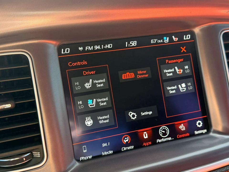 ABS (4-Wheel),Fog Lights,Power Door Locks,Heated Seats,Power Seat,Air Conditioning,Rear Spoiler,SiriusXM Satellite,Alloy Wheels,Electronic Stability Control,Push Button Start,Cruise Control,Tilt & Telescoping Wheel,Daytime Running Lights,Power Windows,Side Air Bags,F&R Head Curtain Air Bags,Power Trunk Release,RWD,AM/FM/HD Radio,Bluetooth Wireless,ParkSense Park Assist,Dual Air Bags,Backup Camera,Power Steering,Alarm System,Rollover Protection,V8 HEMI 6.4 Liter,Hill Start Assist Control,Uconnect,All Speed Traction Control,Automatic 8-Spd w/AutoStick,Keyless Entry