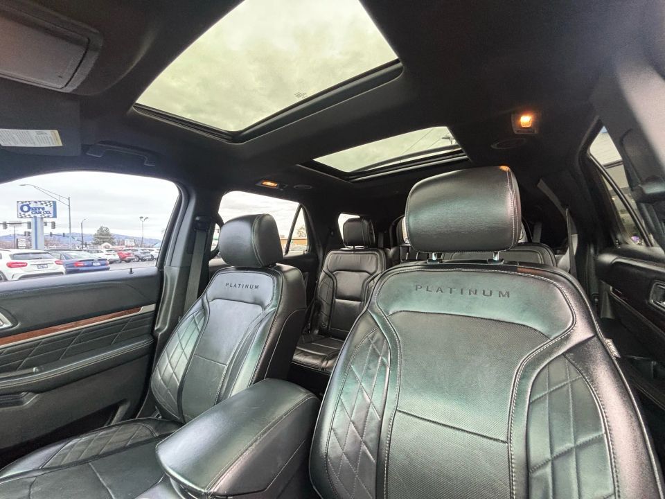 Backup Camera,Dual Power Seats,Air Conditioning,Keyless Entry,Dual Panel Moon Roof,CD/MP3 (Single Disc),Perimeter Alarm System,Heated Seats,Rear Spoiler,Dual Air Bags,Power Windows,AM/FM Stereo,Air Conditioning Rear,Quad Seating (4 Buckets),Traction Control,AdvanceTrac,Side Air Bags,LED Headlamps,Blind-Spot Alert,Roof Rack,Auto 6-Spd SelectShift,SYNC,Keyless Start,Power Door Locks,Fog Lights,Daytime Running Lights,Towing Pkg,Power Steering,Premium Sound,Hill Start Assist Control,Knee Air Bags,Adaptive Cruise Control,Premium Wheels,Parking Sensors,Leather,Hill Descent Control,V6 EcoBoost TT 3.5L,Navigation System,Power Third Row,SiriusXM Satellite,4WD,F&R Head Curtain Air Bags,Park Assist,Tilt Wheel,MyFord Touch,ABS (4-Wheel)