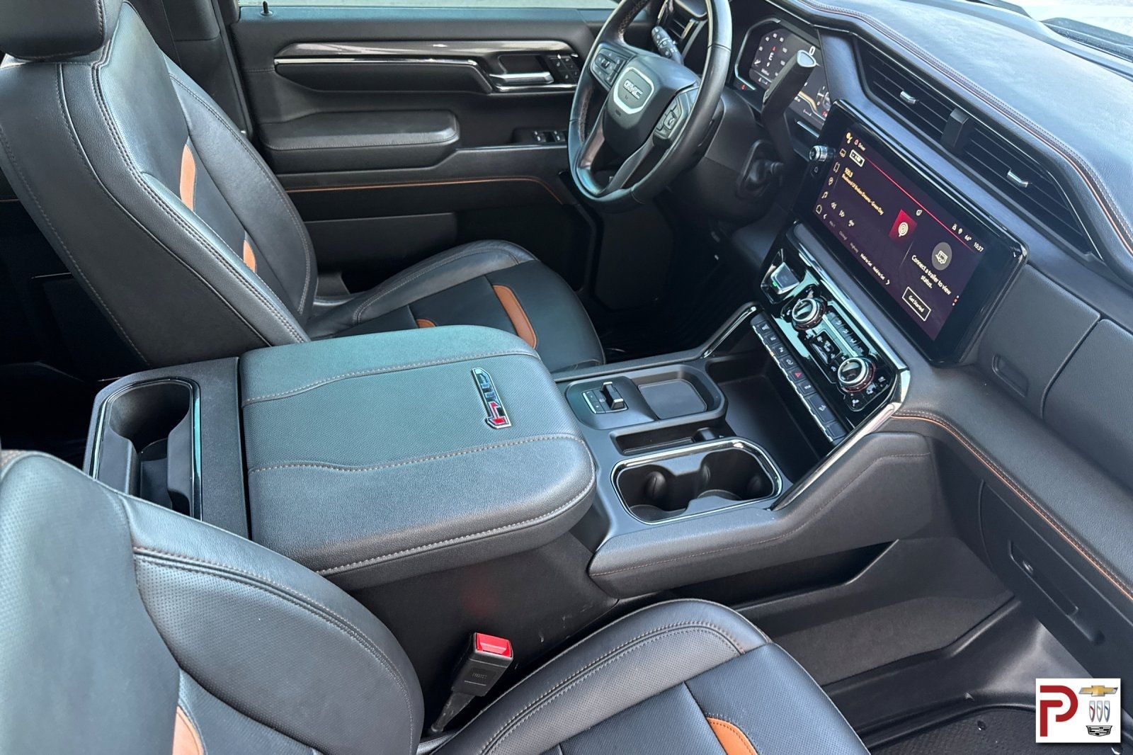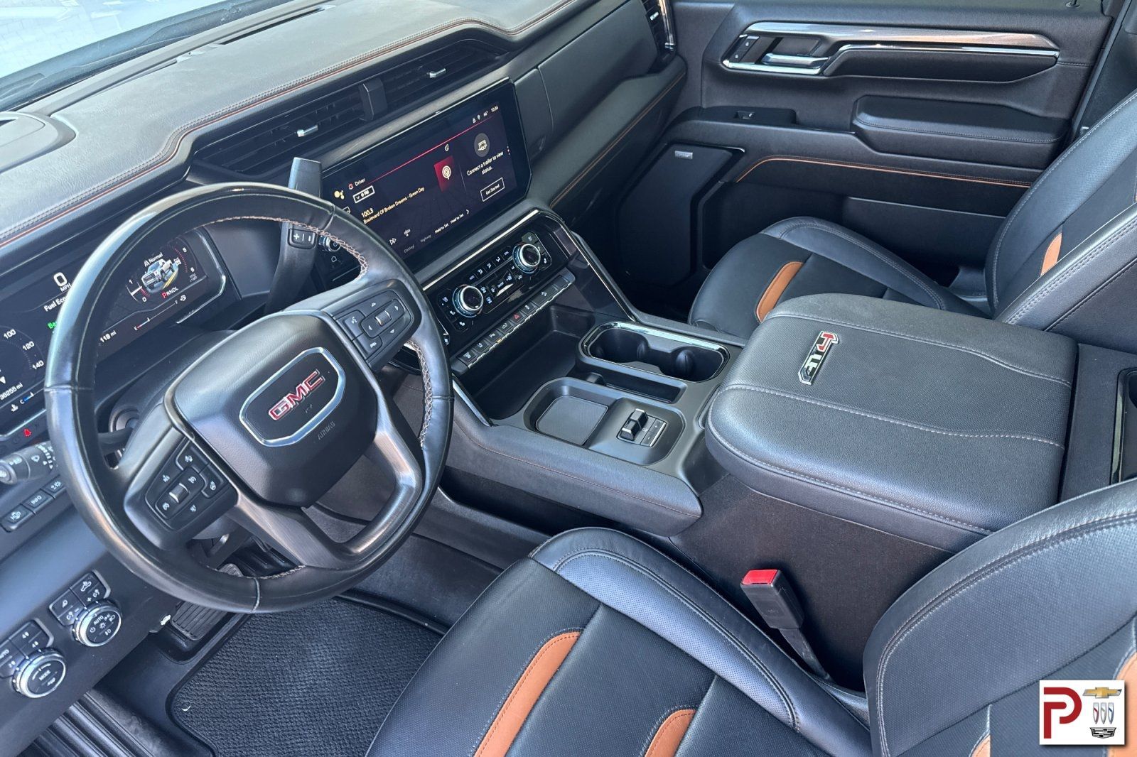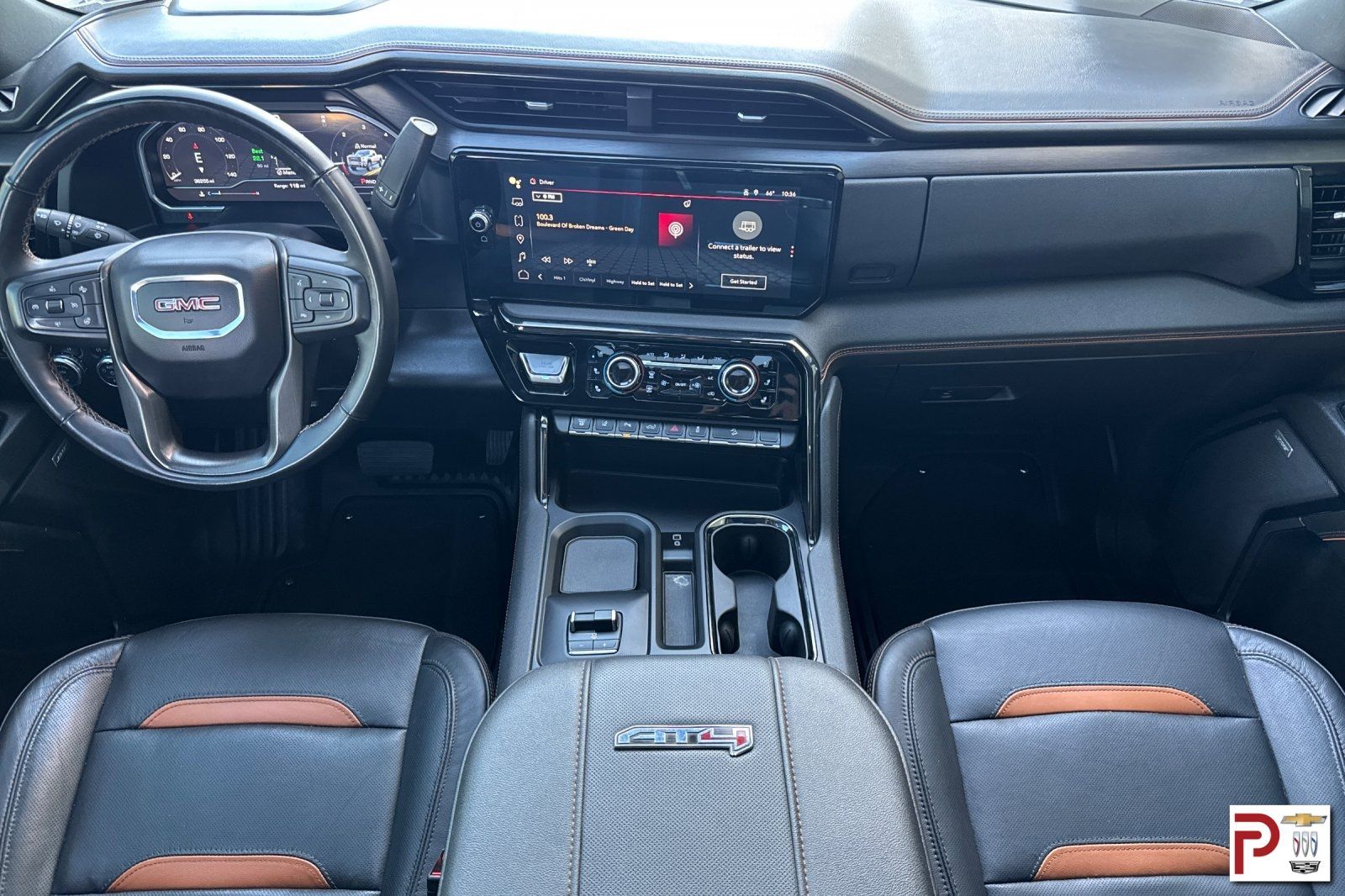 Comfortably commanding details greet you in our AT4 cabin, including heated/ventilated leather power front and heated rear seats, a heated-wrapped steering wheel, dual-zone automatic climate control, adaptive cruise control, remote start, universal home remote, power sliding rear window, and comprehensive connectivity features. A 13.4-inch touchscreen, 15.0-inch driver display, Google Built-In, WiFi compatibility, wireless Android Auto/Apple CarPlay, Bluetooth, and a Bose sound system lead the way.