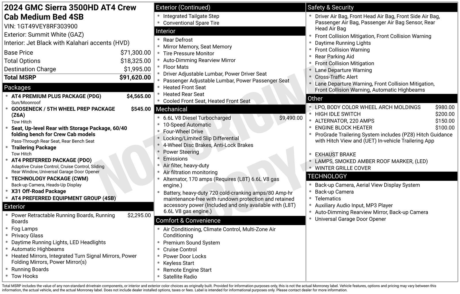 Recent Arrival! Odometer is 11511 miles below market average! Our aggressive Diesel driven 2024 GMC Sierra 3500 AT4 Crew Cab 4X4 with the Premium Plus Package is ready to get on the job off the road in Summit White! Motivated by a TurboCharged 6.6 Liter DuraMax Diesel V8 generating 470hp and 975lb-ft of torque for a 10 Speed Allison Automatic transmission. An off-road suspension and hill-descent control unlock even more capability, and this Four Wheel Drive truck is a fantastic towing machine with a Pro-Grade trailering system. Bold and rugged, our Sierra is at your service with our Premium Plus Package's power sunroof, power-retractable assist steps, LED lighting, fog lamps, robust skid plates, a spray-on bedliner, 20-inch black wheels, trailer mirrors, and a high-versatility MultiPro tailgate.