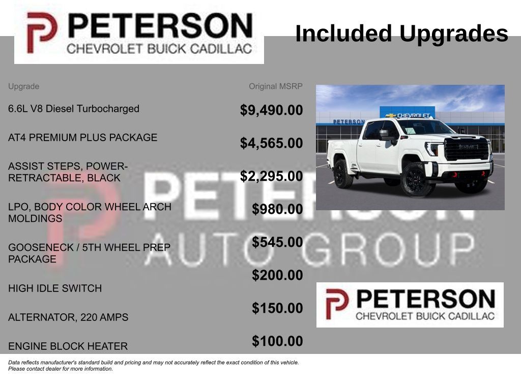 GMC shows it's all about smart safety by supplying automatic braking, blind-spot monitoring, lane-departure warning, HD surround vision, hitch view/guidance, hill-start assistance, trailer sway control, and more. With all that, our Sierra 3500 AT4 won't complain when the big jobs call! Save this Page and Call for Availability. We Know You Will Enjoy Your PETERSON CHEVROLET Test Drive Towards Ownership!
