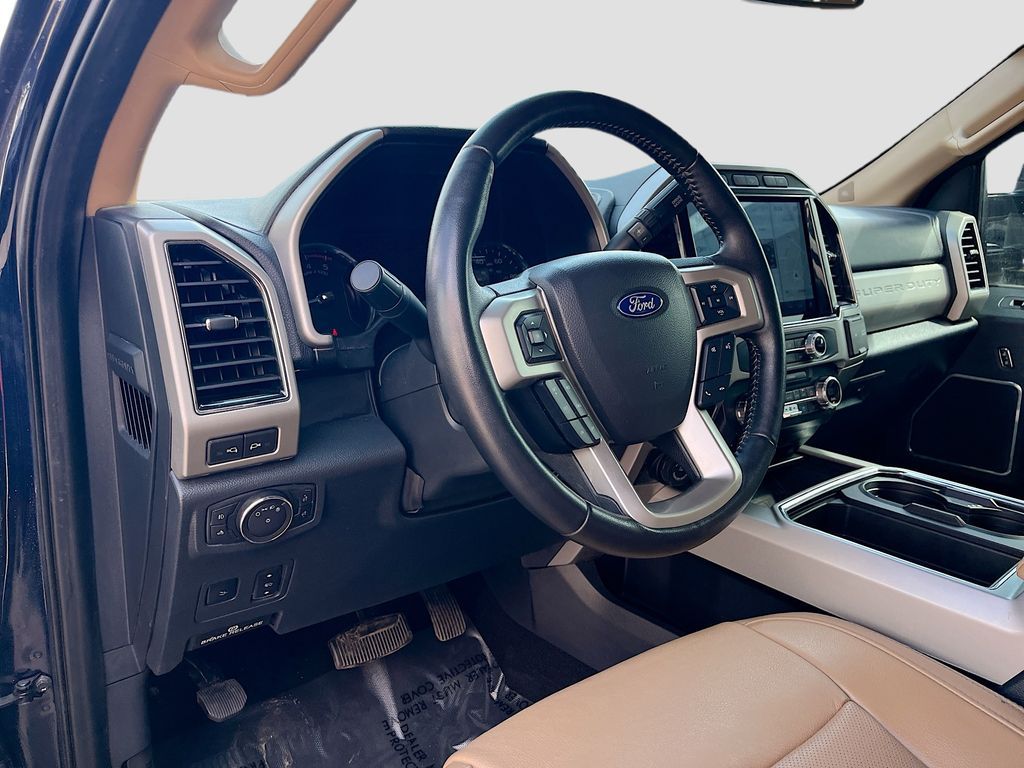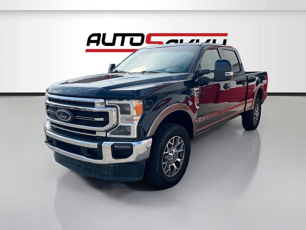 Uncover the power and luxury of the 2022 Ford F-250 LARIAT 4WD Crew Cab, now available at AutoSavvy Windsor. This robust truck is dressed in a striking Antimatter Blue, paired with a sophisticated Baja Leather interior, offering a perfect blend of style and comfort. With only 65,758 miles, this vehicle is built to perform, featuring a formidable Powerstroke 6.7L V-8 diesel engine that delivers an impressive 475 horsepower. Enjoy a smooth ride with the 10-speed automatic transmission and the confidence of four-wheel drive. This F-250 is equipped with premium features such as heated and ventilated front seats, a 12-inch touchscreen with SYNC 4 technology, and a B&O Sound System by Bang & Olufsen. Stay connected with Apple CarPlay and Android Auto, and enjoy the convenience of keyless entry and push-button start. The current status of the title is branded, highlighting AutoSavvy Windsor's commitment to transparency and quality. This Ford F-250 is Savvy Certified, having passed a comprehensive inspection to ensure it meets high safety and performance standards. Drive with peace of mind knowing it is backed by our 4-month/4,500 Mile Warranty, safeguarding your investment. Advanced safety features such as Blind Spot Monitoring, Lane Departure Warning, and Automatic Emergency Braking are designed to keep you and your passengers safe on every journey. Visit AutoSavvy Windsor today to experience why the 2022 Ford F-250 LARIAT is the ultimate choice for those seeking power, luxury, and cutting-edge technology in a versatile truck.