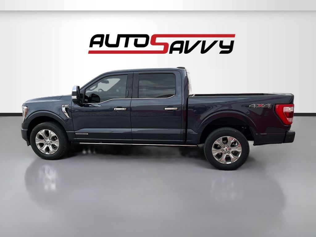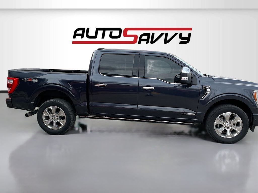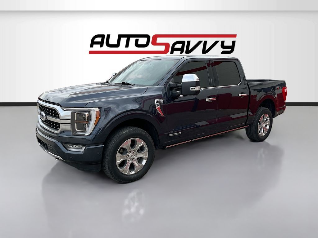 Experience the power and luxury of the 2021 Ford F-150 Platinum, now available at AutoSavvy Windsor. This Smoked Quartz Tinted Crew Cab is a stunning blend of performance and style, driven by a robust 3.5L V-6 twin-turbo engine delivering 400 horsepower. With only 26,968 miles, this truck is practically new and offers an impressive 24 MPG both in the city and on the highway. Inside, enjoy premium features like Carmelo leather seats, a 12-inch touchscreen with SYNC 4 technology, and a B&O Unleashed Sound System by Bang & Olufsen. Stay connected with Apple CarPlay and Android Auto, and relish the comfort of heated and ventilated front seats, a heated steering wheel, and dual-zone climate control. The F-150 Platinum also includes advanced options like the Ford Co-Pilot360 Active 2.0 package, BlueCruise hands-free driving, and a twin-panel moonroof, enhancing your driving experience. The current status of the title is branded, underscoring AutoSavvy Windsor's commitment to transparency and quality. This F-150 is Savvy Certified, having passed a comprehensive inspection to ensure it meets high safety and performance standards. Drive with confidence knowing it is backed by our 4-month/4,500 Mile Warranty, protecting your investment. Equipped with cutting-edge safety features such as adaptive cruise control, blind spot monitoring, and automatic emergency braking, this truck is designed to keep you and your passengers safe on every journey. Visit AutoSavvy Windsor today to discover why the 2021 Ford F-150 Platinum is the ultimate choice for those seeking power, luxury, and cutting-edge technology in a versatile pickup.