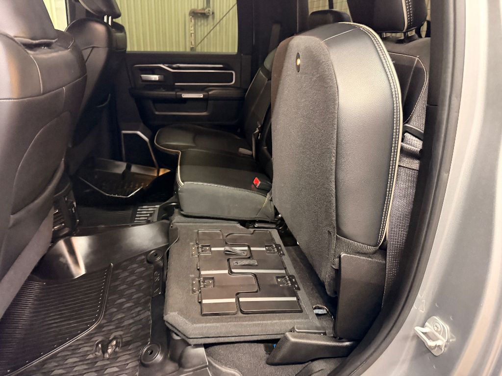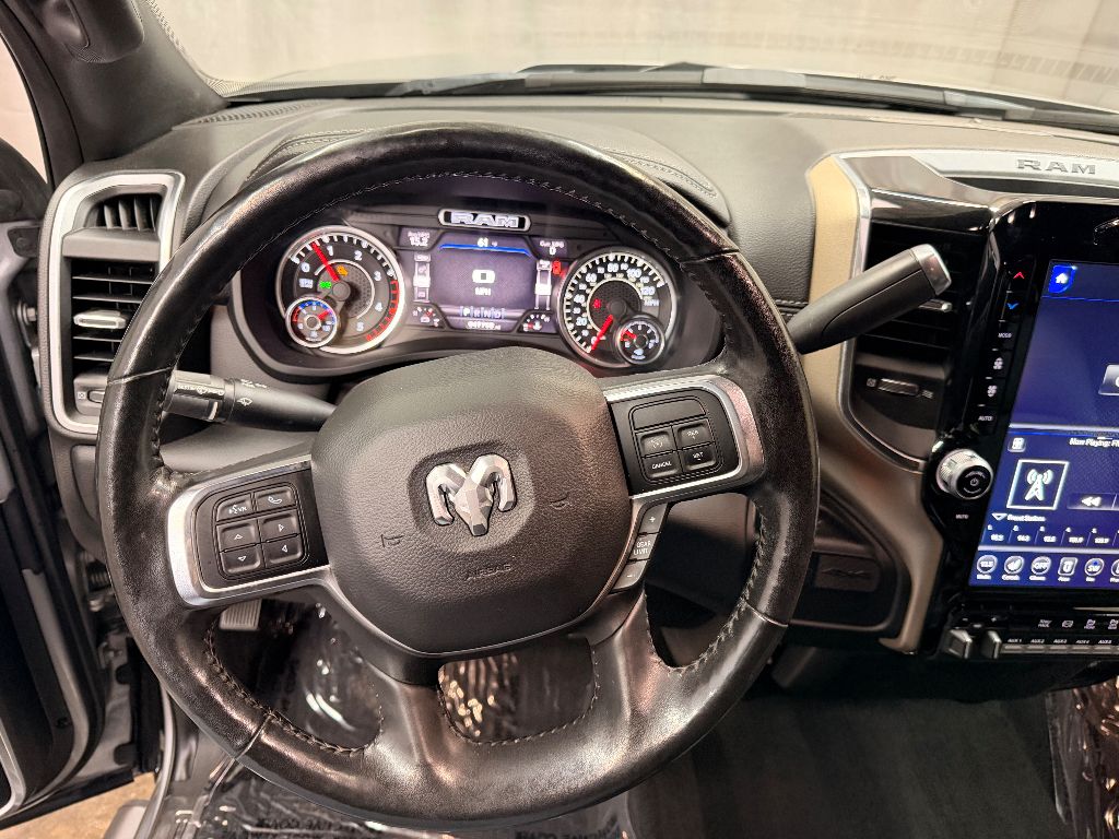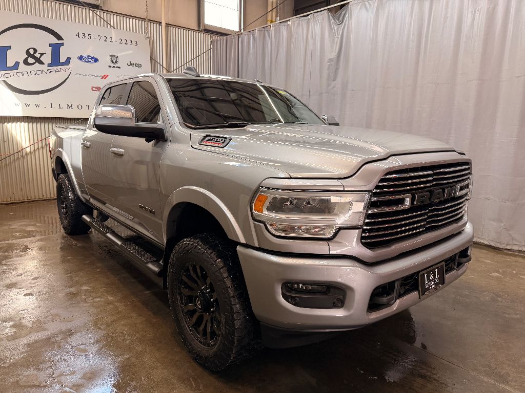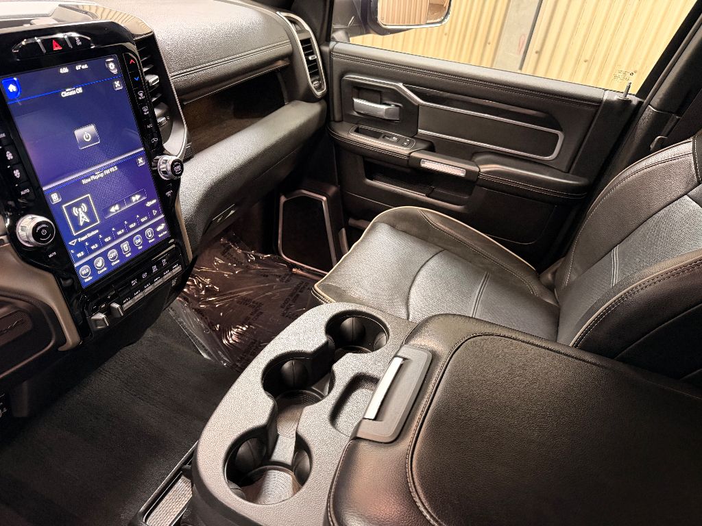 Cold Weather Group: Engine Block Heater; Winter Front Grille Cover,Laramie Level 1 Equipment Group: Remote Tailgate Release; Auto High Beam Headlamp Control; Blind Spot and Cross Path Detection; Rain Sensitive Windshield Wipers; Power Adjustable Pedals with Memory; Foam Bottle Insert (door Trim Panel); Single Disc Remote CD Player; 2nd Row in Floor Storage Bins; Radio/driver Seat/mirrors/pedals Memory; Ventilated Front Seats,Quick Order Package 2HH Laramie,Sport Appearance Package: Body Color Grille Surround; Black Interior Accents; Sport Decal; Body Color Door Handles; Painted Front Bumper; Painted Rear Bumper,Towing Technology Group: Center Stop Lamp with Cargo View Camera; Surround View Camera System; Blind Spot and Cross Path Detection; Trailer Reverse Guidance,Protection Group: Tow Hooks; Transfer Case Skid Plate Shield,Uconnect Radio 12.0 with Navigation,Blind Spot and Cross Path Detection,Anti-Spin Differential Rear Axle,Center Stop Lamp with Cargo View Camera,Single Disc Remote CD Player,Billet Silver Metallic CC,LED Bed Lighting,Front and Rear Rubber Floor Mats,Instrument Panel Mounted Auxiliary Switches,Apple CarPlay/Android Auto smart device mirroring,Ventilated driver and front passenger seats,Integrated navigation system with voice activation,Blind Spot Detection,Keyfob remote start,Heated steering wheel,Bluetooth handsfree wireless device connectivity,Heated driver and front passenger seats,Simulated suede and leather front seat upholstery,Driver seat with 8-way directional controls,Front passenger seat with 8-way directional controls,Keyfob trunk control,12 inch primary display,Mobile hotspot internet access,Surround View rear mounted camera,Brake assist system,Cruise control with steering wheel mounted controls,Primary monitor touchscreen,Cross Path Detection collision warning,Driver seat power reclining, lumbar support, cushion tilt, fore/aft control and height adjustable control,Part-time 4WD,Cummins 6.7L I-6 diesel direct injection, VVT intercooled turbo, diesel, engine with 370HP,Cummins 6.7L I-6,Keyless Enter 'N Go with hands-free access and push button start,Aerial view camera,Smart device remote start,Push-button,Wireless audio streaming,Trailer Reverse Guidance vehicle to trailer hitching assist,Front mounted camera,Right side camera,Pickup box camera,Left side camera,Dual-zone front climate control,Auto high-beam headlights,Sentry Key immobilizer,Alpine speakers,Active noise cancellation,SiriusXM Traffic Plus real-time traffic,SiriusXM Guardian vehicle integrated emergency SOS system,Trailer brake controller,Trailer sway control,Uconnect external memory control,Internet radio capability,9 USB ports,Electronic stability control system with anti-roll,Hill start assist,Automatic climate control,ParkSense front and rear parking sensors,LED daytime running lights