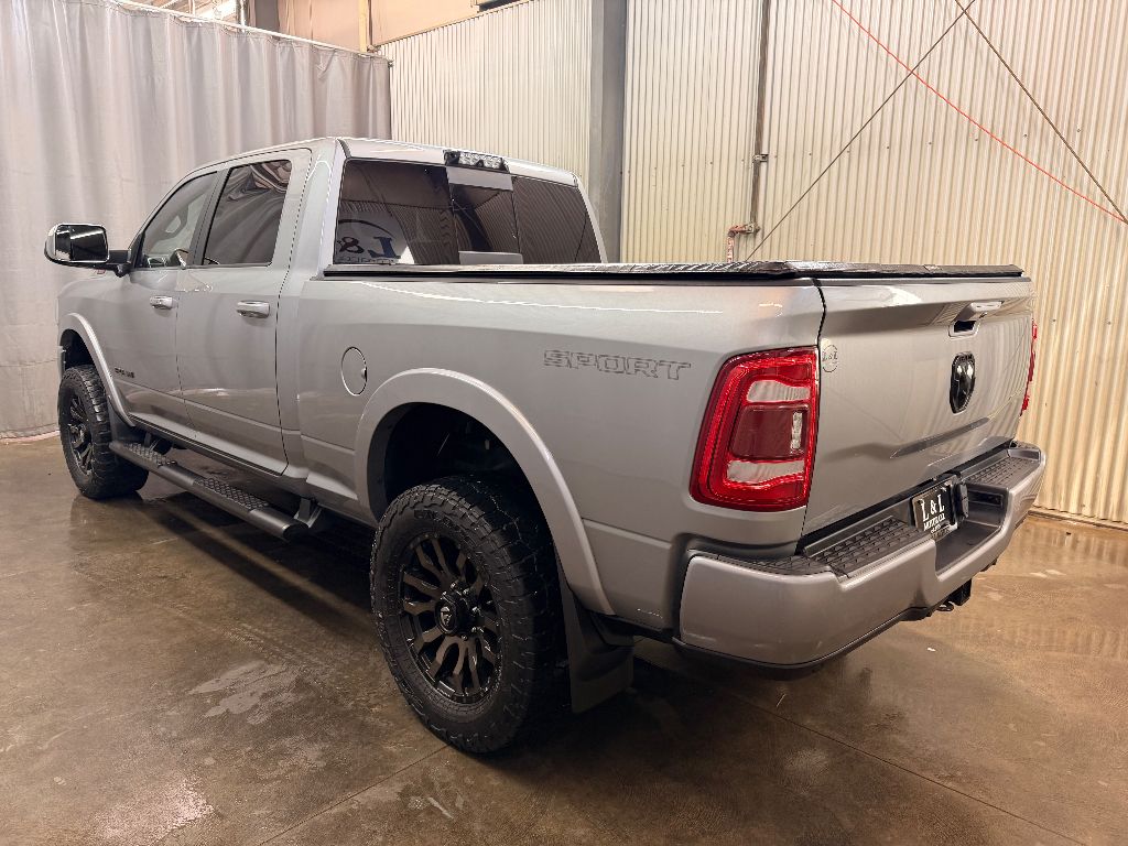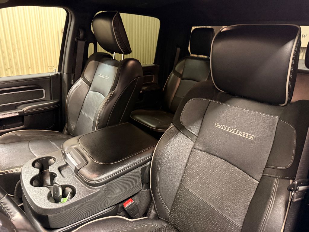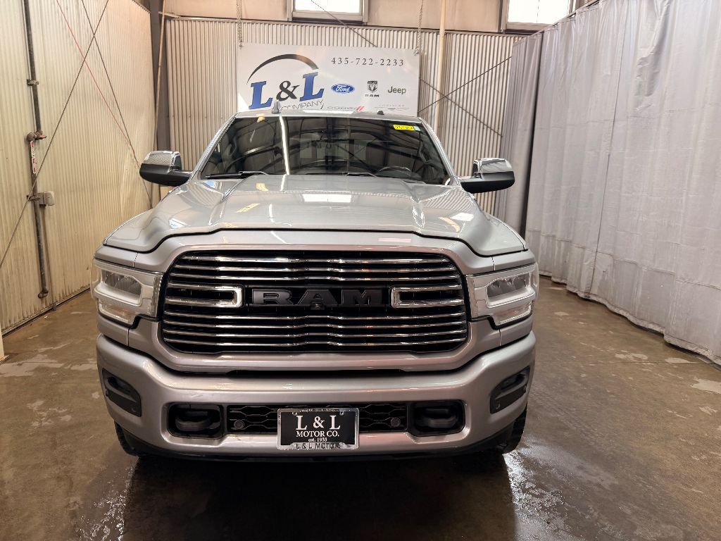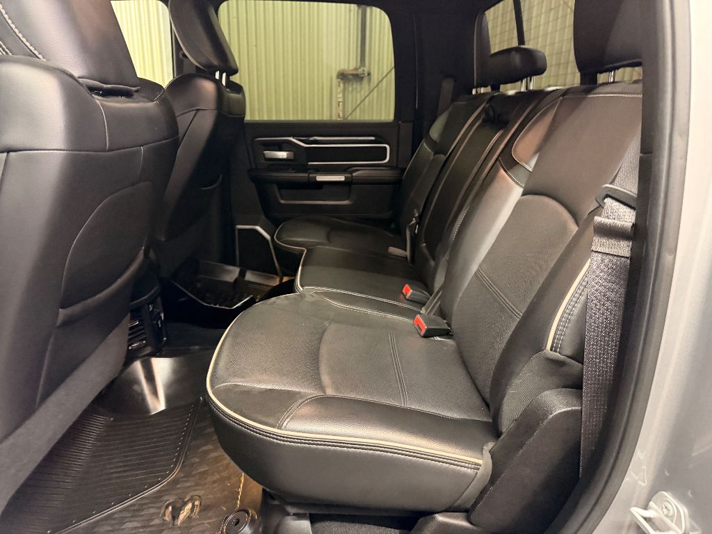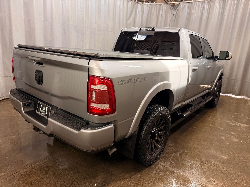 Cold Weather Group: Engine Block Heater; Winter Front Grille Cover,Laramie Level 1 Equipment Group: Remote Tailgate Release; Auto High Beam Headlamp Control; Blind Spot and Cross Path Detection; Rain Sensitive Windshield Wipers; Power Adjustable Pedals with Memory; Foam Bottle Insert (door Trim Panel); Single Disc Remote CD Player; 2nd Row in Floor Storage Bins; Radio/driver Seat/mirrors/pedals Memory; Ventilated Front Seats,Quick Order Package 2HH Laramie,Sport Appearance Package: Body Color Grille Surround; Black Interior Accents; Sport Decal; Body Color Door Handles; Painted Front Bumper; Painted Rear Bumper,Towing Technology Group: Center Stop Lamp with Cargo View Camera; Surround View Camera System; Blind Spot and Cross Path Detection; Trailer Reverse Guidance,Protection Group: Tow Hooks; Transfer Case Skid Plate Shield,Uconnect Radio 12.0 with Navigation,Blind Spot and Cross Path Detection,Anti-Spin Differential Rear Axle,Center Stop Lamp with Cargo View Camera,Single Disc Remote CD Player,Billet Silver Metallic CC,LED Bed Lighting,Front and Rear Rubber Floor Mats,Instrument Panel Mounted Auxiliary Switches,Apple CarPlay/Android Auto smart device mirroring,Ventilated driver and front passenger seats,Integrated navigation system with voice activation,Blind Spot Detection,Keyfob remote start,Heated steering wheel,Bluetooth handsfree wireless device connectivity,Heated driver and front passenger seats,Simulated suede and leather front seat upholstery,Driver seat with 8-way directional controls,Front passenger seat with 8-way directional controls,Keyfob trunk control,12 inch primary display,Mobile hotspot internet access,Surround View rear mounted camera,Brake assist system,Cruise control with steering wheel mounted controls,Primary monitor touchscreen,Cross Path Detection collision warning,Driver seat power reclining, lumbar support, cushion tilt, fore/aft control and height adjustable control,Part-time 4WD,Cummins 6.7L I-6 diesel direct injection, VVT intercooled turbo, diesel, engine with 370HP,Cummins 6.7L I-6,Keyless Enter 'N Go with hands-free access and push button start,Aerial view camera,Smart device remote start,Push-button,Wireless audio streaming,Trailer Reverse Guidance vehicle to trailer hitching assist,Front mounted camera,Right side camera,Pickup box camera,Left side camera,Dual-zone front climate control,Auto high-beam headlights,Sentry Key immobilizer,Alpine speakers,Active noise cancellation,SiriusXM Traffic Plus real-time traffic,SiriusXM Guardian vehicle integrated emergency SOS system,Trailer brake controller,Trailer sway control,Uconnect external memory control,Internet radio capability,9 USB ports,Electronic stability control system with anti-roll,Hill start assist,Automatic climate control,ParkSense front and rear parking sensors,LED daytime running lights
