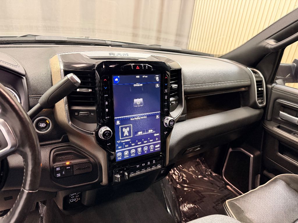 Cold Weather Group: Engine Block Heater; Winter Front Grille Cover. Laramie Level 1 Equipment Group: Remote Tailgate Release; Auto High Beam Headlamp Control; Blind Spot and Cross Path Detection; Rain Sensitive Windshield Wipers; Power Adjustable Pedals with Memory; Foam Bottle Insert (door Trim Panel); Single Disc Remote CD Player; 2nd Row in Floor Storage Bins; Radio/driver Seat/mirrors/pedals Memory; Ventilated Front Seats. Quick Order Package 2HH Laramie. Sport Appearance Package: Body Color Grille Surround; Black Interior Accents; Sport Decal; Body Color Door Handles; Painted Front Bumper; Painted Rear Bumper. Towing Technology Group: Center Stop Lamp with Cargo View Camera; Surround View Camera System; Blind Spot and Cross Path Detection; Trailer Reverse Guidance. Protection Group: Tow Hooks; Transfer Case Skid Plate Shield. Uconnect Radio 12.0 with Navigation. Blind Spot and Cross Path Detection. Anti-Spin Differential Rear Axle. Center Stop Lamp with Cargo View Camera. Single Disc Remote CD Player. Billet Silver Metallic CC. LED Bed Lighting. Front and Rear Rubber Floor Mats. Instrument Panel Mounted Auxiliary Switches. Equipment listed is based on original vehicle build and subject to change. Please confirm the accuracy of the included equipment by calling the dealer prior to purchase.