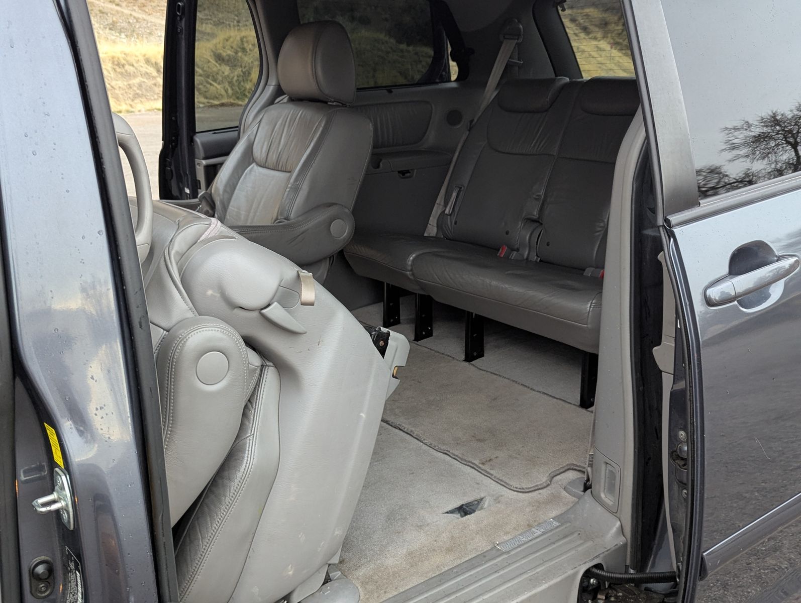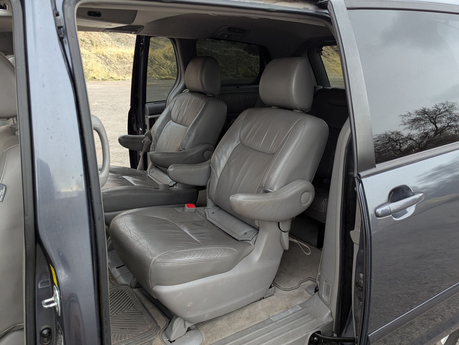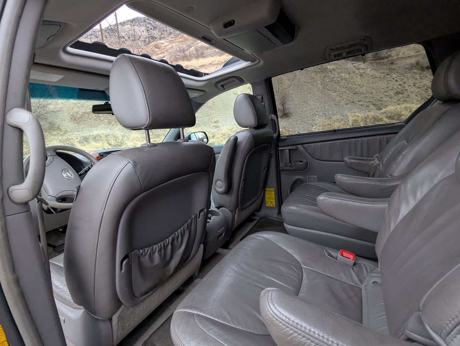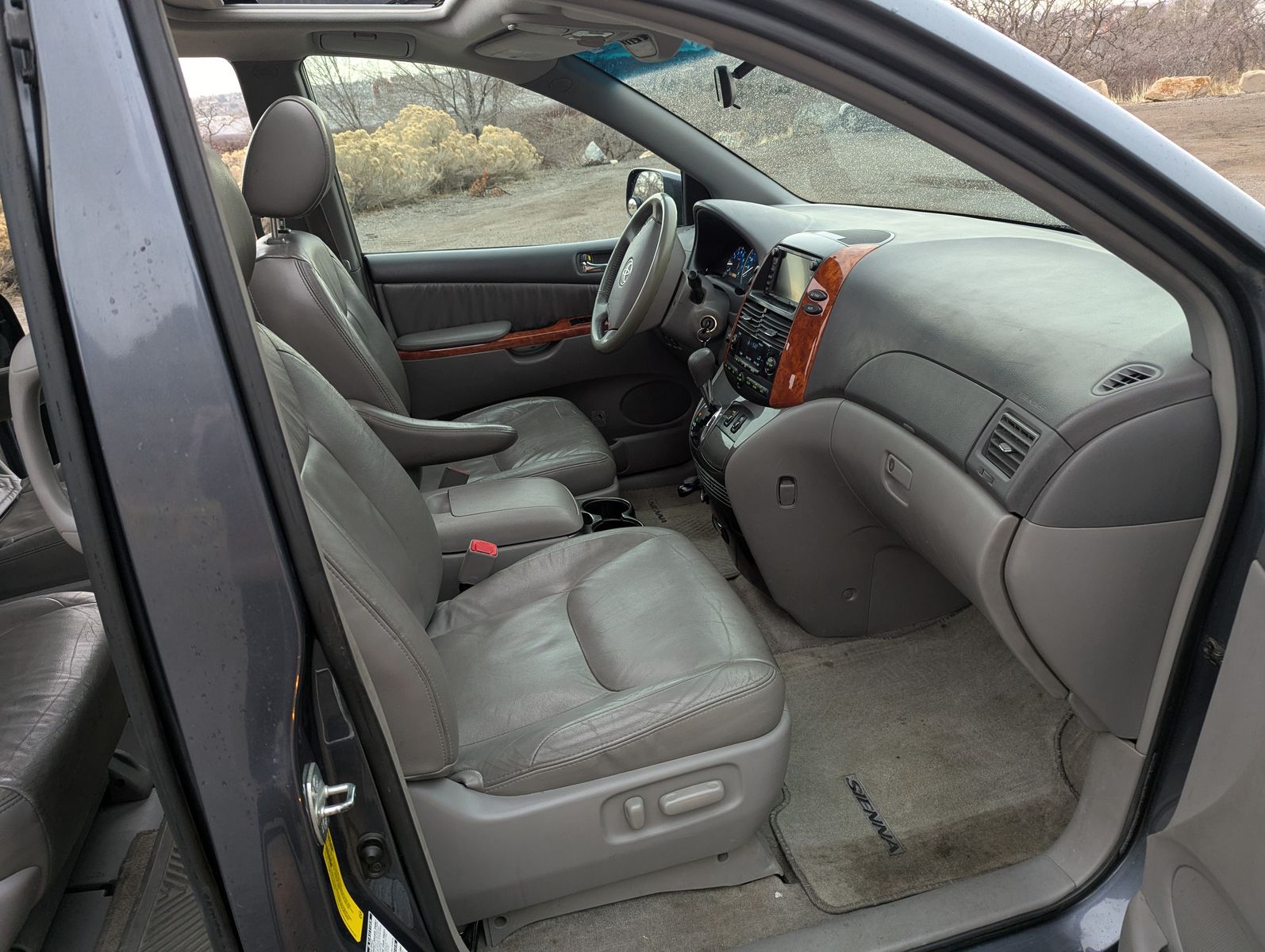 AW 7 passenger Toyota Sienna to get your family and gear where you want to go! Sunroof. Heated front seats. DVD player and 3 bluetooth headsets. Leather seats. 2 keys and one fob. Always run on higher quality gas. Small dent on driver door from one time when the door hyperextended. New brakes and water pump this year. The radio/backup camera screen needs to be replaced...okay actually only needs to be replaced if you want a radio or back-up camera :) not necessary for driving the van around.