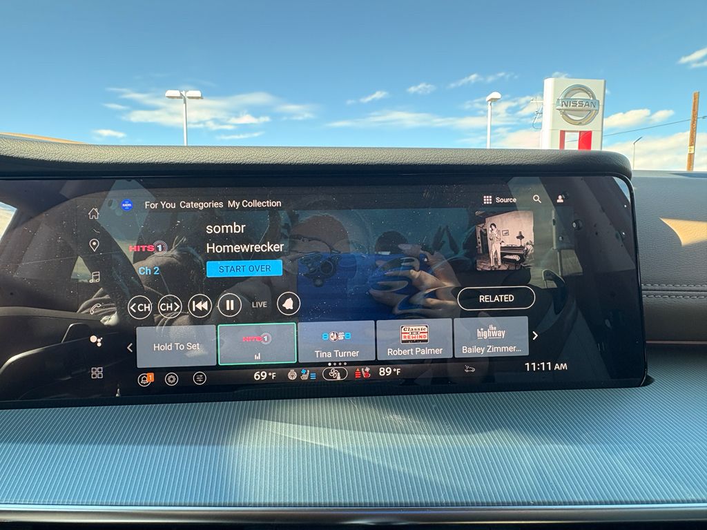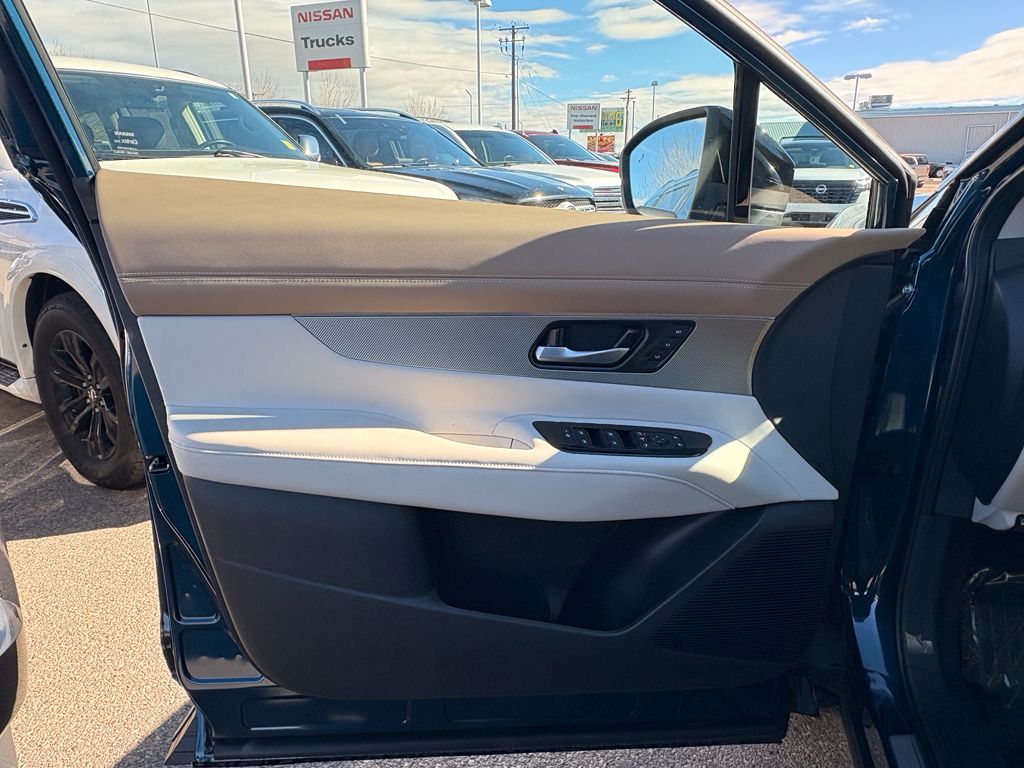 Cargo Package: 3-Position Cargo Area Protector; Retractable Cargo Cover; Cargo Net; First Aid Kit,2-Tone with Premium Paint,Carpeted Floor and Cargo Mats,Illuminated Kick Plates,Painted Splash Guards,Wireless Apple CarPlay/Wireless Android Auto smart device wireless mirroring,ProPILOT Assist hands-on cruise control,Intelligent Forward Collision Warning w/Automatic Emergency Braking (AEB),Automatic Emergency Braking with Pedestrian Detection (P-AEB),NissanConnect with Wi-Fi Hotspot mobile hotspot internet access,RearView Monitor rear mounted camera,Intelligent Lane Intervention (I-LI),Rear Cross Traffic Alert (RCTA) w/Rear Automatic Braking (RAB) collision mitigation,Intelligent Cruise Control (ICC),Head-up display,Brake assist system,Cruise control with steering wheel mounted controls,Power liftgate rear cargo door,Ventilated driver and front passenger seats,NissanConnect with Navigation and Services integrated navigation system with voice activation,Keyfob remote start,Heated steering wheel,Heated driver and front passenger seats,Heated rear seats,Semi-Aniline leather front seat upholstery,Primary monitor touchscreen,First and second-row sliding and tilting glass sunroof with express open/close activation sunshade,Driver seat power reclining, lumbar support, cushion tilt, fore/aft control and height adjustable control,Intelligent All-Wheel Drive automatic full-time AWD,VC-Turbo 2L I-4 port/direct injection, DOHC, variable valve control, intercooled turbo, regular unleaded, engine with 241HP,VC-Turbo 2L I-4 DOHC,Front wireless smart device charging,Google Assistant built-in virtual assistant,Intelligent Driver Alertness (I-DA),Traffic Sign Recognition (TSR),Intelligent Key with hands-free access and push button start,Keyfob window control,HD Enhanced Intelligent Around View Monitor aerial view camera,Invisible Hood View ground view camera,Front windshield solar coating,Smart device remote start,Push-button,Automatic brake hold,Bluetooth wireless audio streaming,Gauge cluster display size: 12.30,Proximity cargo area access release,Front mounted camera,Right side camera,Left side camera,Blind Spot Intervention (BSI) / Blind Spot Warning (BSW),Dual-zone front climate control,Full gauge cluster screen,High Beam Assist (HBA) auto high-beam headlights,Massaging driver seat,Massaging front passenger seat