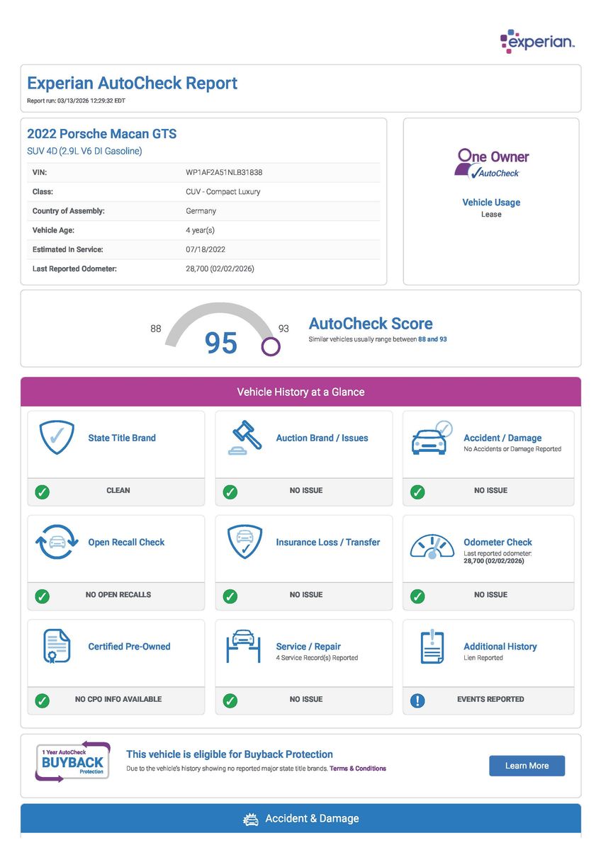 Don’t miss your chance to own this beautifully performing, reliable, and head-turning Porsche Macan GTS. It’s a true driver’s delight—ready to bring more fun, performance, and admiration to your daily drive.