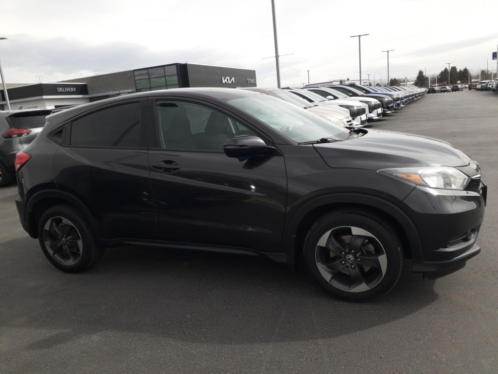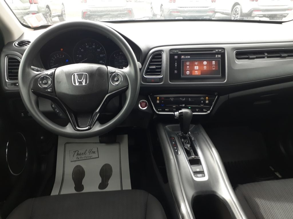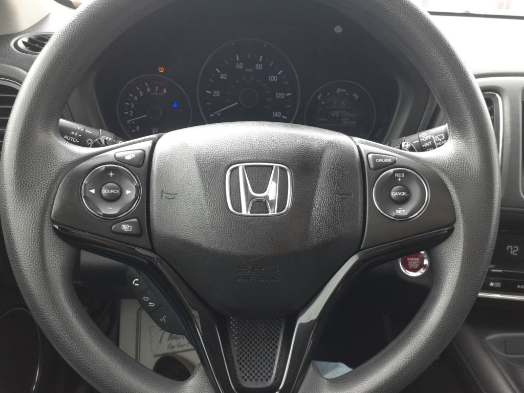 See what's behind you with the back up camera on this vehicle. The Honda HR-V features a hands-free Bluetooth phone system. The Honda HR-V keeps you comfortable with Auto Climate. This Honda HR-V has a 4 Cyl, 1.8L high output engine. This vehicle projects refinement with a racy metallic gray exterior. Set the temperature exactly where you are most comfortable in this model. The fan speed and temperature will automatically adjust to maintain your preferred zone climate. This vehicle is equipped with all wheel drive. The fog lights cut through the weather so you can see what's ahead. Electronic Stability Control is one of many advanced safety features on this model. This vehicle is equipped with a gasoline engine. This small suv has an automatic transmission. Easily set your speed in this small suv with a state of the art cruise control system. Increase or decrease velocity with the touch of a button.