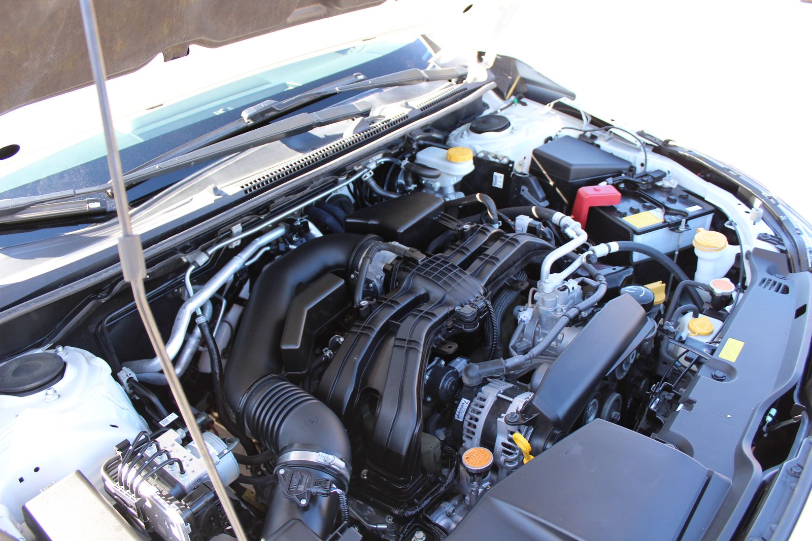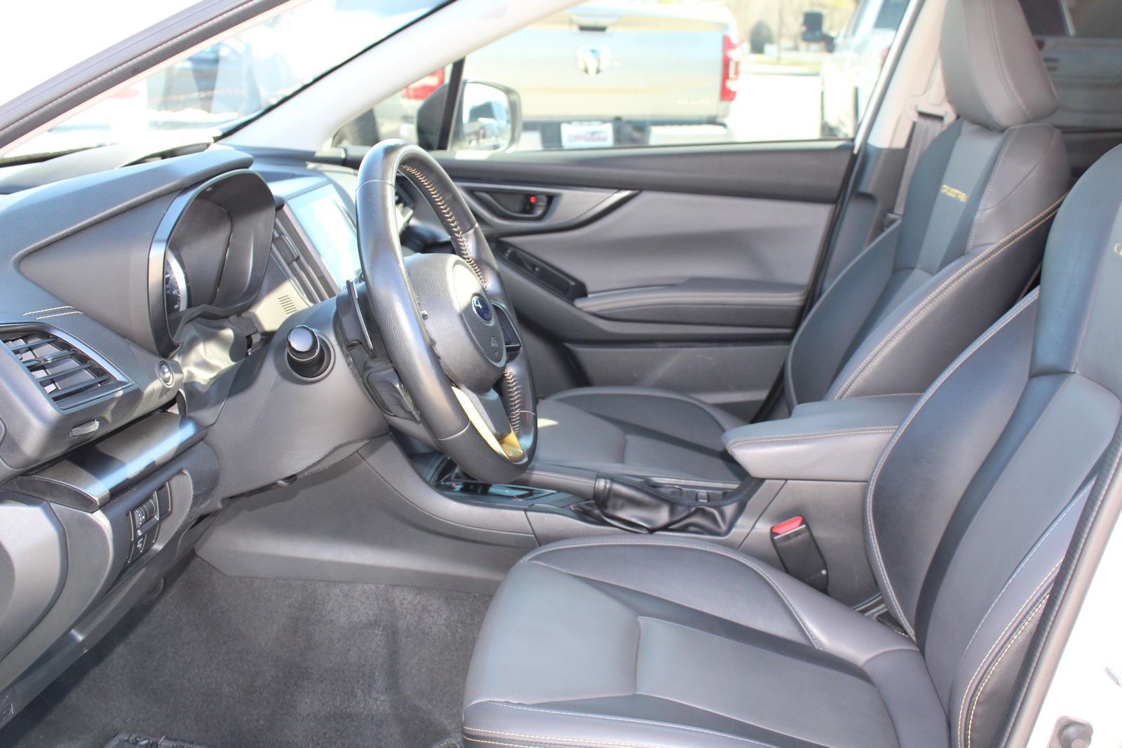 Inside the cabin, you’ll find a sporty and comfortable interior designed for everyday driving and adventure alike. The durable StarTex upholstery is both rugged and easy to maintain, while heated front bucket seats keep you comfortable during colder months. The interior is accented with bold yellow stitching that gives the Crosstrek Sport a distinctive, athletic feel.