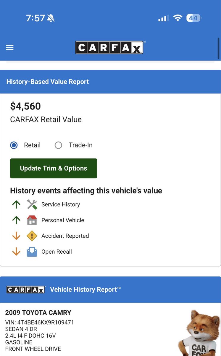 • Carfax value: $4,560