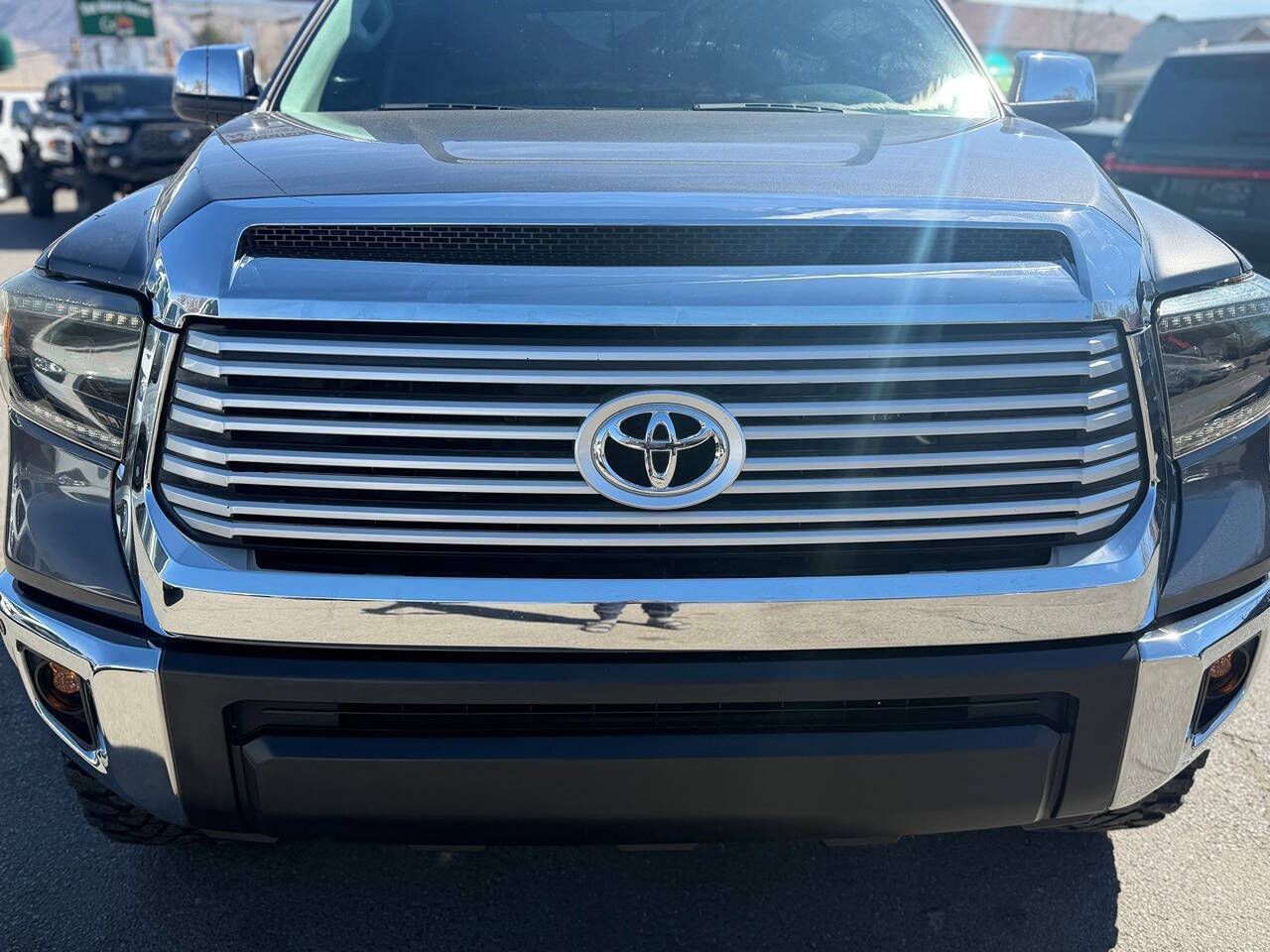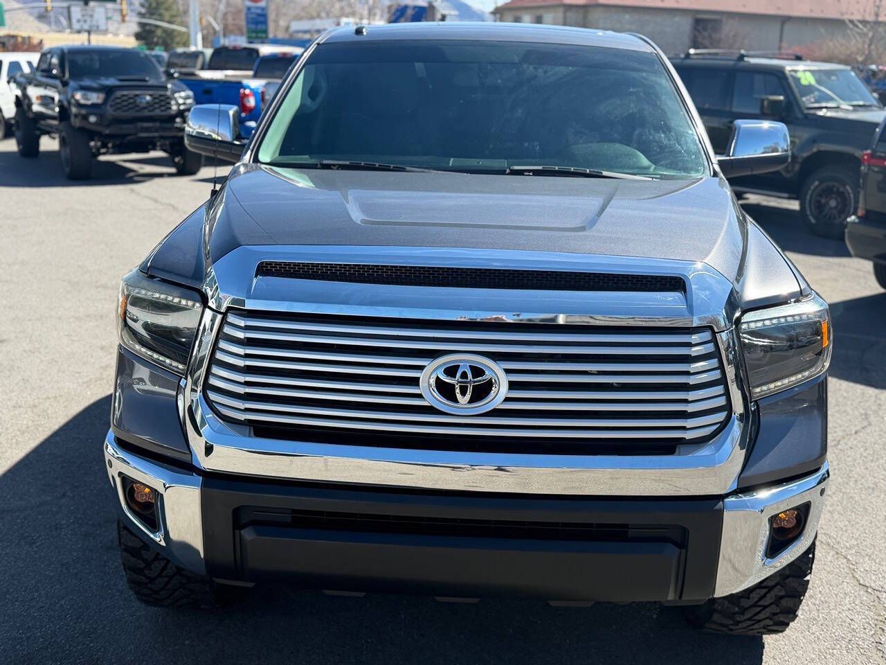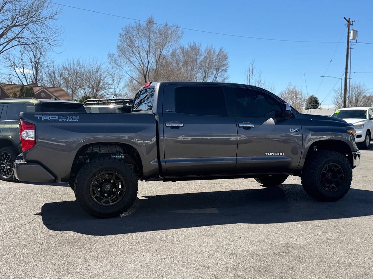 2017 Toyota Tundra CrewMax Limited 4x4 89K Miles Magnetic Gray Metallic over Graphite Leather TRD Off-Road Package Another beautiful Toyota truck is on its way to Tyacke Motors. This gorgeous two-owner Tundra CrewMax Limited 4x4 has spent its entire life in Las Vegas, Nevada, and the condition reflects the dry climate and careful ownership. Finished in Magnetic Gray Metallic over Graphite leather, this is a fully loaded Limited model that presents in exceptional condition inside and out. Exactly the kind of clean, rust-free West Coast truck we specialize in. CONDITION The paint and body are 100% original with no paintwork, no accident history, and no damage history. • No dings • No dents • Completely Rust Free • Panels are straight and original The finish still has excellent gloss and depth throughout. The undercarriage is exceptionally clean, exactly what you want to see from a Nevada truck. Frame rails, suspension components, and hardware are all clean and corrosion free. The interior is smoke-free and extremely well preserved. The Graphite leather seats, dash, and trim all show minimal wear and present beautifully. This truck truly looks and feels like the carefully owned example it is. LIMITED PACKAGE & FACTORY EQUIPMENT The Limited trim is one of the best-equipped models in the Tundra lineup and includes: 5.7L iForce V8 6-speed automatic transmission CrewMax cab Limited leather interior Heated power front seats Power driver seat with memory Power sliding rear window Power moonroof JBL premium sound system Navigation system Backup camera Bluetooth connectivity Dual-zone automatic climate control Smart Key with push-button start Power folding mirrors Parking sensors Tow package Running boards Fog lights 20-inch Black Rhino alloy wheels Premium interior trim TRD OFF-ROAD PACKAGE This truck is also equipped with the TRD Off-Road Package, which includes: TRD off-road tuned suspension Off-road traction control Crawl control Multi-Terrain Select TRD badging UPGRADES This Tundra has been tastefully upgraded with high-quality components: Total Chaos UCA's King Off-Road dual-reservoir shocks Black Rhino wheels 35-inch Yokohama tires The truck has an aggressive stance while still driving beautifully. SERVICE Recently serviced and inspected, including: Differential services New HD tie rods This Tundra is 100% ready to go. TYACKE MOTORS STANDARD This is exactly the type of truck we are known for — clean, rust-free Western Toyota trucks with excellent history and exceptional condition. CARFAX Certified Credit-Union Financing Available In-Office Full high-resolution photo gallery and 4K walk-around video available at: www.tyackemotors.com Tyacke Motors — Provo, Utah Toyota Truck Specialists If I wouldn’t park it in my own driveway, I won’t buy it.