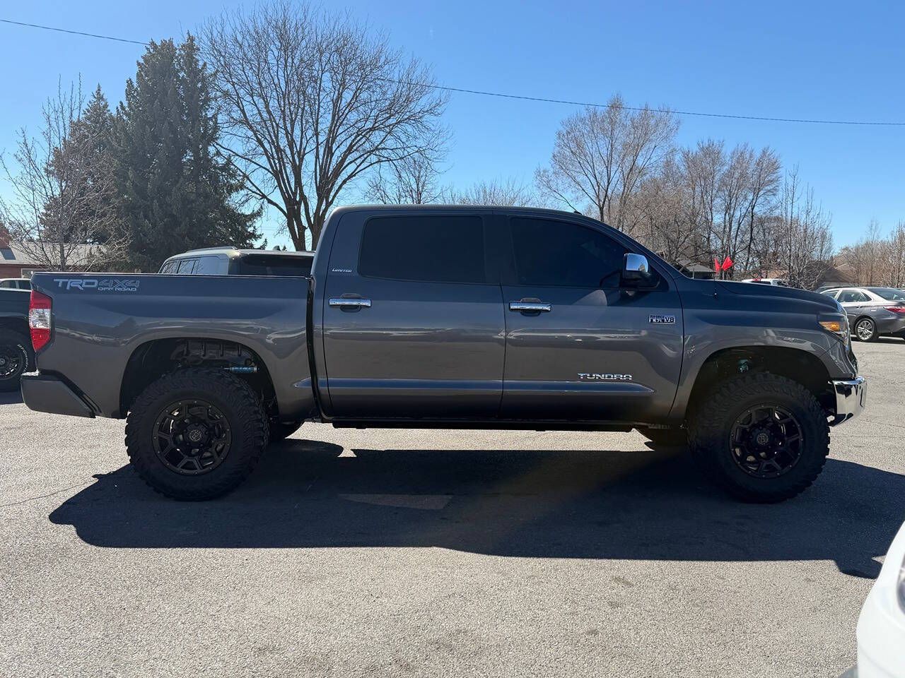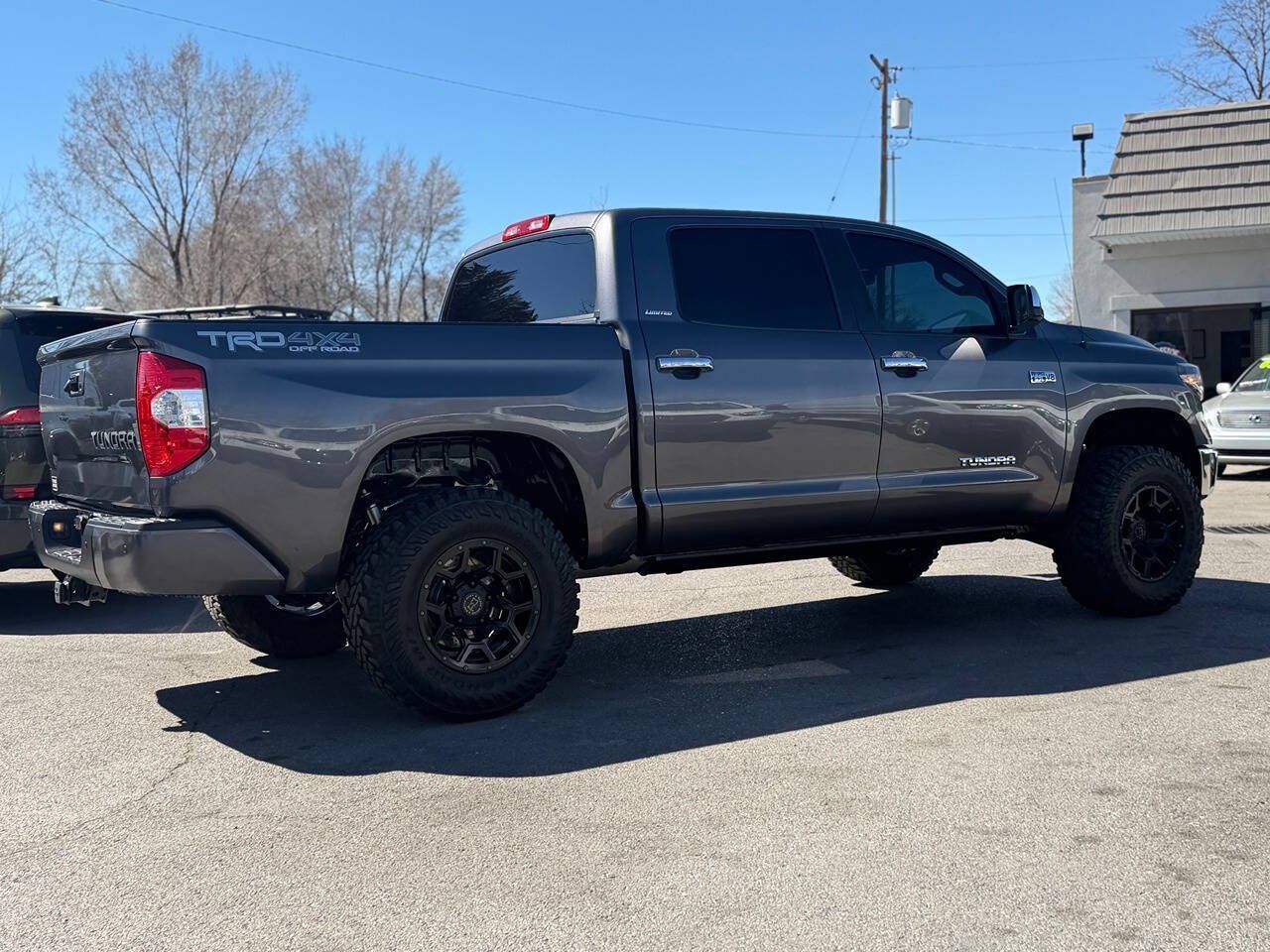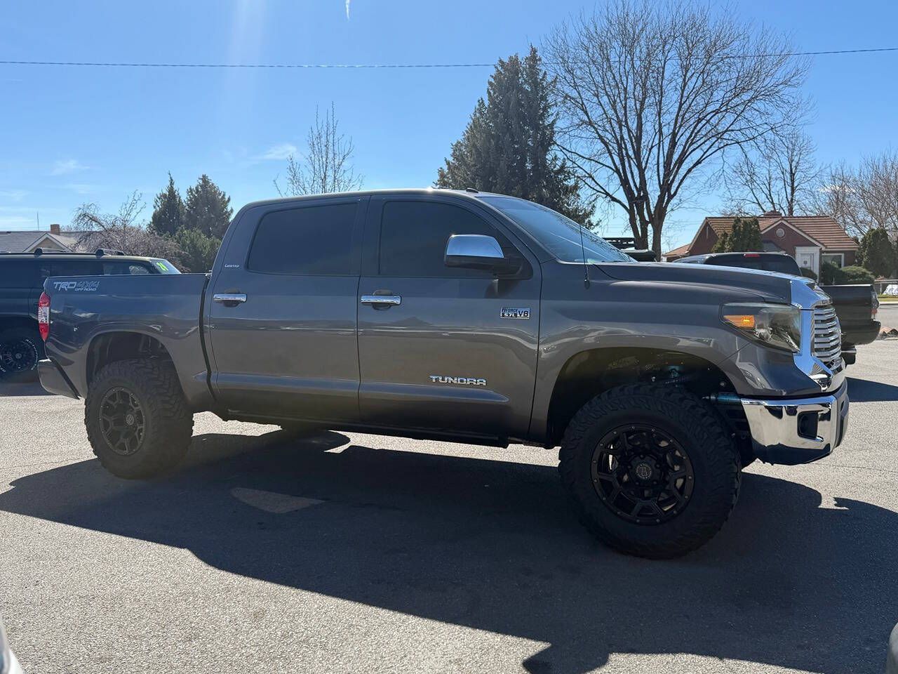 2017 Toyota Tundra CrewMax Limited 4x4 89K Miles Magnetic Gray Metallic over Graphite Leather TRD Off-Road Package Another beautiful Toyota truck is on its way to Tyacke Motors. This gorgeous two-owner Tundra CrewMax Limited 4x4 has spent its entire life in Las Vegas, Nevada, and the condition reflects the dry climate and careful ownership. Finished in Magnetic Gray Metallic over Graphite leather, this is a fully loaded Limited model that presents in exceptional condition inside and out. Exactly the kind of clean, rust-free West Coast truck we specialize in. CONDITION The paint and body are 100% original with no paintwork, no accident history, and no damage history. • No dings • No dents • Completely Rust Free • Panels are straight and original The finish still has excellent gloss and depth throughout. The undercarriage is exceptionally clean, exactly what you want to see from a Nevada truck. Frame rails, suspension components, and hardware are all clean and corrosion free. The interior is smoke-free and extremely well preserved. The Graphite leather seats, dash, and trim all show minimal wear and present beautifully. This truck truly looks and feels like the carefully owned example it is. LIMITED PACKAGE & FACTORY EQUIPMENT The Limited trim is one of the best-equipped models in the Tundra lineup and includes: 5.7L iForce V8 6-speed automatic transmission CrewMax cab Limited leather interior Heated power front seats Power driver seat with memory Power sliding rear window Power moonroof JBL premium sound system Navigation system Backup camera Bluetooth connectivity Dual-zone automatic climate control Smart Key with push-button start Power folding mirrors Parking sensors Tow package Running boards Fog lights 20-inch Black Rhino alloy wheels Premium interior trim TRD OFF-ROAD PACKAGE This truck is also equipped with the TRD Off-Road Package, which includes: TRD off-road tuned suspension Off-road traction control Crawl control Multi-Terrain Select TRD badging UPGRADES This Tundra has been tastefully upgraded with high-quality components: Total Chaos UCA's King Off-Road dual-reservoir shocks Black Rhino wheels 35-inch Yokohama tires The truck has an aggressive stance while still driving beautifully. SERVICE Recently serviced and inspected, including: Differential services New HD tie rods This Tundra is 100% ready to go. TYACKE MOTORS STANDARD This is exactly the type of truck we are known for — clean, rust-free Western Toyota trucks with excellent history and exceptional condition. CARFAX Certified Credit-Union Financing Available In-Office Full high-resolution photo gallery and 4K walk-around video available at: www.tyackemotors.com Tyacke Motors — Provo, Utah Toyota Truck Specialists If I wouldn’t park it in my own driveway, I won’t buy it.