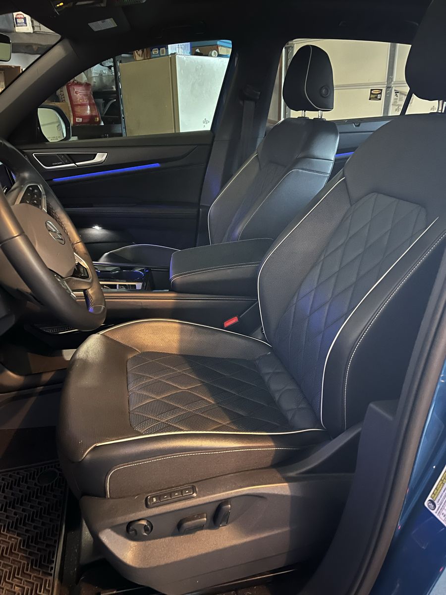 This beautiful blue/turquoise Atlas has every option you could want and more. Excellent condition. Smooth comfortable ride with lots of room. 2.0 L turbocharged 4 cylinder AWD 4motion. I average about 23 mpg. Travel assist, blind spot monitoring, front assist, park assist. Seats 5. 8 cupholders. Towing package. Leather interior, heated and cooled front seats with heated back seats. Panoramic sun roof. Digital cockpit with Apple CarPlay.