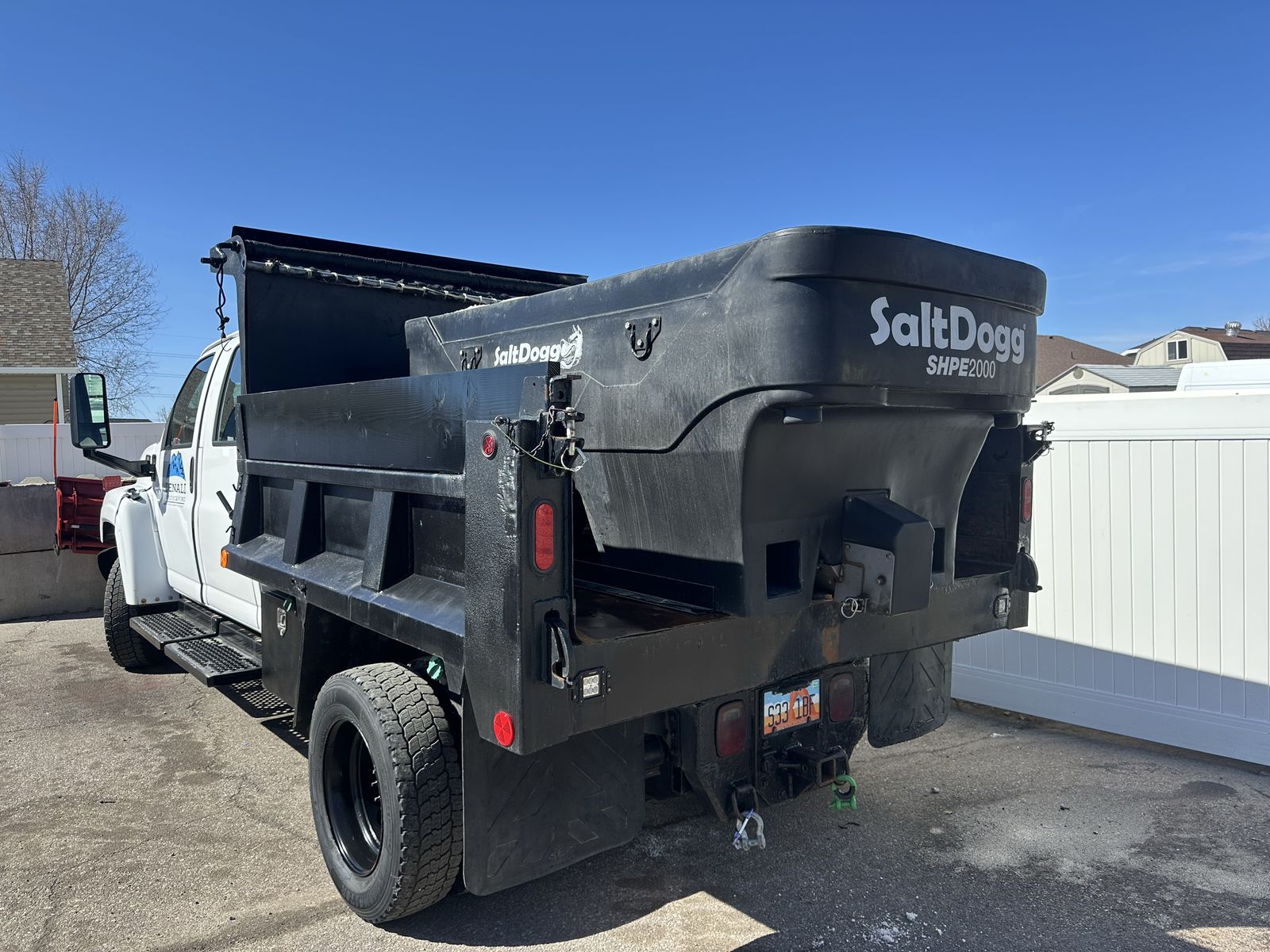 Dump bed with tarp. Load range H tires with severe snow rating