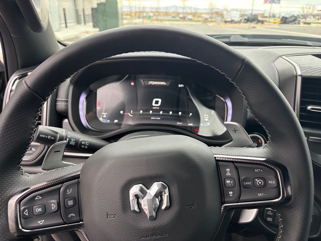 2026 Ram 1500 Rebel 4WD — Perry UT. This rugged and refined pickup pairs a fuel-efficient 3.0L V6 gasoline engine with proven 4WD capability, delivering confident performance on urban roads and rugged trails. Equipped with the Off-Road Package, the Rebel includes upgraded suspension, skid plates, and off-road tuned features for enhanced clearance and traction when the terrain gets tough. The cabin balances comfort and technology with a heated steering wheel for chilly mornings, remote start for convenience, and a premium sound system that fills every drive with crisp audio. Hands-free Bluetooth connectivity and intuitive infotainment controls make calls and media effortless and safe while you focus on the road. Whether towing, hauling, or commuting, the Ram 1500 Rebel offers a versatile bed and durable construction built for hard work and weekend adventure. Advanced driver-assist features and a thoughtfully designed interior deliver confidence and comfort for driver and passengers alike. Located in Perry UT, this Rebel is competitively priced and listed as the best price in the area, providing exceptional value for buyers seeking capability and modern amenities. Schedule a test drive in Perry today to experience the blend of off-road readiness and daily driving comfort the 2026 Ram 1500 Rebel offers. Competitive financing and expert service options are available to make ownership straightforward and satisfying.