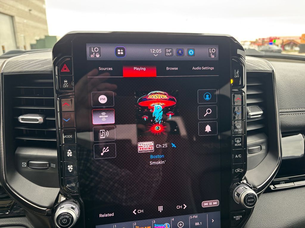 This vehicle's Forward Collision Warning feature alerts drivers to potential front-end collisions. The leather seats in it are a must for buyers looking for comfort, durability, and style. The Ram 1500 features a hands-free Bluetooth phone system. Never get into a cold vehicle again with the remote start feature on this model. Protect this unit from unwanted accidents with a cutting edge backup camera system. This vehicle has a premium sound system installed. The vehicle offers Apple CarPlay for seamless connectivity. An off-road package is installed on this Ram 1500 so you are ready for your four-wheeling best. This Ram 1500 offers Android Auto for seamless smartphone integration. You'll never again be lost in a crowded city or a country region with the navigation system on it. This unit is pure luxury with a heated steering wheel. This model has auto-adjust speed for safe following. with XM/Sirus Satellite Radio you are no longer restricted by poor quality local radio stations while driving this model. Anywhere on the planet, you will have hundreds of digital stations to choose from.
