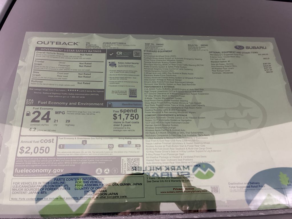 Mark Miller Subaru is the leading Subaru dealership in Utah. Our large inventory and dedicated sales teams has made us the go to destination for the Subaru brand in Utah. Our Promise Price is the best way to buy a Subaru in Utah. Come experience the Mark Miller Subaru difference today! ** This 2026 Crystal Black Silica Subaru Outback Touring XT AWD is well equipped and includes these features and benefits: 12 Speakers, 4-Wheel Disc Brakes, ABS brakes, Air Conditioning, Alloy wheels, AM/FM radio: SiriusXM with 360L, Anti-whiplash front head restraints, Auto High-beam Headlights, Auto-dimming Rear-View mirror, Automatic temperature control, Blind Spot Warning, Brake assist, Bumpers: body-color, Compass, Driver door bin, Driver vanity mirror, Dual front impact airbags, Dual front side impact airbags, Electronic Stability Control, Emergency communication system: MySubaru Companion (5-years free), Exterior Parking Camera Rear, Four wheel independent suspension, Front anti-roll bar, Front Bucket Seats, Front Center Armrest w/Storage, Front dual zone A/C, Front fog lights, Front reading lights, Fully automatic headlights, Garage door transmitter: HomeLink, harman/kardon® Speakers, Heated and Ventilated Front Bucket Seats, Heated door mirrors, Heated front seats, Heated rear seats, Heated steering wheel, HVAC memory, Illuminated entry, Knee airbag, Leather steering wheel, Low tire pressure warning, Memory seat, Nappa Leather-Trimmed Perforated Upholstery, Navigation system: MySubaru Navigator (1-year trial), Occupant sensing airbag, Outside temperature display, Overhead airbag, Overhead console, Panic alarm, Passenger door bin, Passenger vanity mirror, Power door mirrors, Power driver seat, Power Liftgate, Power moonroof, Power passenger seat, Power steering, Power windows, Radio: Subaru 12.1'' Multimedia System with Navigation, Rain sensing wipers, Rear anti-roll bar, Rear seat center armrest, Rear window defro