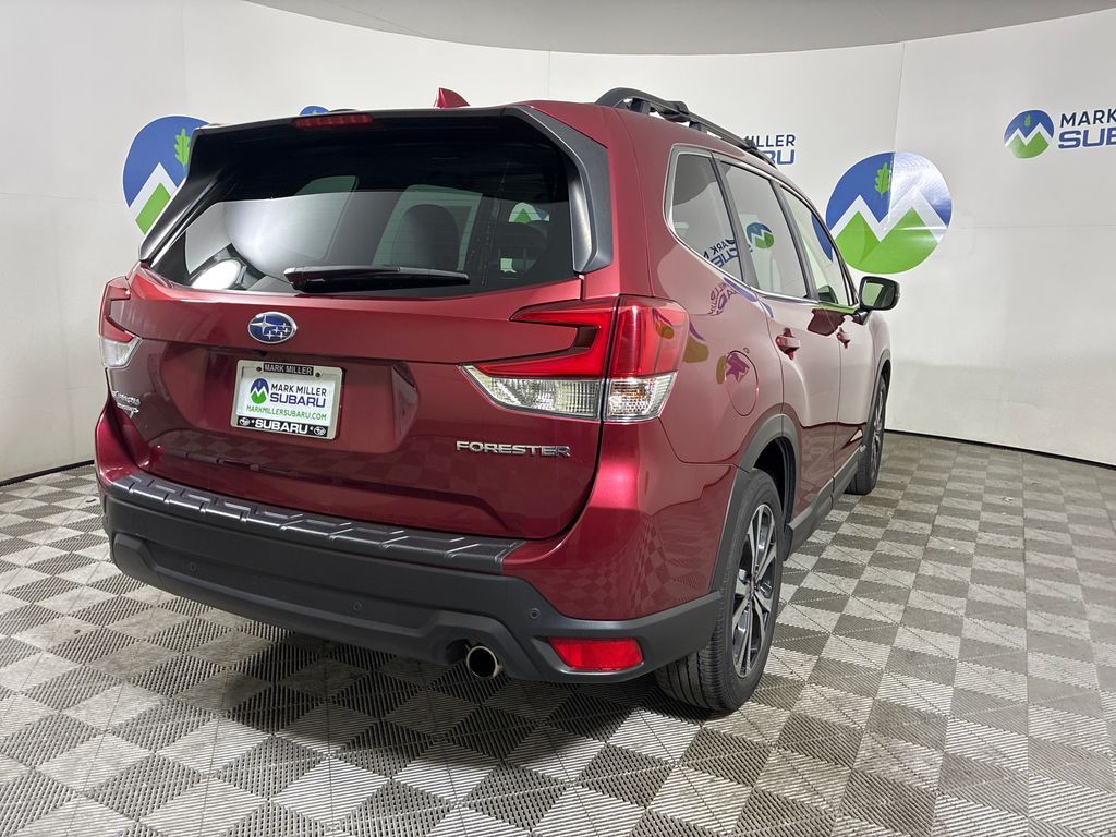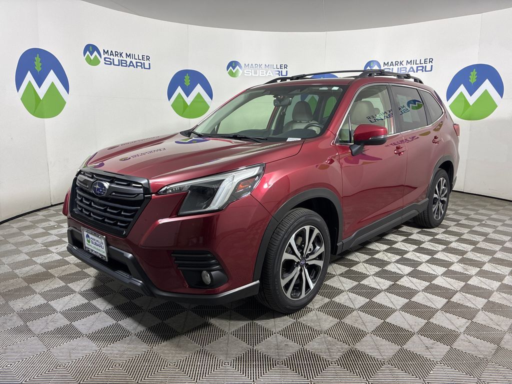 This 2023 Crimson Red Pearl Subaru Forester Limited AWD is well equipped and includes these features and benefits: Nav & harman/kardon & RAB & Heated Steering Wheel (harman/kardon 9-Speaker Audio System, Heated Steering Wheel, Radio: Subaru Starlink 8.0'' Multimedia Nav System, and Reverse Automatic Braking System (RAB)), Popular Package #2 (All-Weather Floor Liners, Auto-Dimming Exterior Mirror w/Approach Light, Auto-Dimming Mirror w/Compass & HomeLink, Cargo Net, and Rear Bumper Cover), Subaru Certified Pre-Owned Certified, 3.70 Axle Ratio, 4-Wheel Disc Brakes, 6 Speakers, ABS brakes, Air Conditioning, Alloy wheels, AM/FM radio: SiriusXM, Anti-whiplash front head restraints, Auto High-beam Headlights, Automatic temperature control, Brake assist, Bumpers: body-color, CD player, Crossbar Set - Aero, Driver door bin, Driver vanity mirror, Dual front impact airbags, Dual front side impact airbags, Electronic Stability Control, Emergency communication system: STARLINK Safety and Security (Subscription Required), Exterior Parking Camera Rear, Footwell Illumination Kit, Four wheel independent suspension, Front anti-roll bar, Front Bucket Seats, Front Center Armrest, Front dual zone A/C, Front fog lights, Front reading lights, Fully automatic headlights, Heated door mirrors, Heated Front Bucket Seats, Heated front seats, Illuminated entry, Knee airbag, Leather Shift Knob, Low tire pressure warning, Navigation System, Occupant sensing airbag, Outside temperature display, Overhead airbag, Overhead console, Panic alarm, Passenger door bin, Passenger vanity mirror, Perforated Leather-Trimmed Upholstery, Power door mirrors, Power driver seat, Power Liftgate, Power moonroof: Panoramic, Power steering, Power windows, Radio data system, Radio: Subaru Starlink 8.0'' Multimedia Plus System, Rear anti-roll bar, Rear seat center armrest, Rear Seatback Protector, Rear window defroster, Rear window wiper, Remote keyless entry, Roof rack: rails only, Security system, Speed control, Speed-sensing steering, Split folding rear seat, Spoiler, STARLINK/Apple CarPlay/Android Auto, Steering wheel mounted audio controls, Sunshade - Windshield, Tachometer, Telescoping steering wheel, Tilt steering wheel, Traction control, Trip computer, Turn signal indicator mirrors, Variably intermittent wipers, and Wheels: 18'' x 7.0 J Black Machine Finish Alloy.