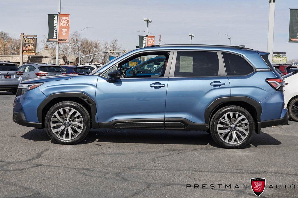 AWD! Meet the 2025 Subaru Forester Touring, your one-owner SUV ready for every Salt Lake City adventure. From snowy canyon drives to weekend escapes in Park City or St. George, Subaru's Symmetrical All-Wheel Drive and EyeSight Driver Assist Technology keep you confident year-round. Inside, enjoy premium leather seating, a panoramic moonroof, heated front and rear seats, a large touchscreen with Apple CarPlay and Android Auto, navigation, and a premium Harman Kardon sound system. Find it today at Prestman Auto, known for competitive pricing and a wide selection. This Branded Title 2025 Subaru Forester Touring blends luxury, capability, and one-owner peace of mind for life along the Wasatch Front!