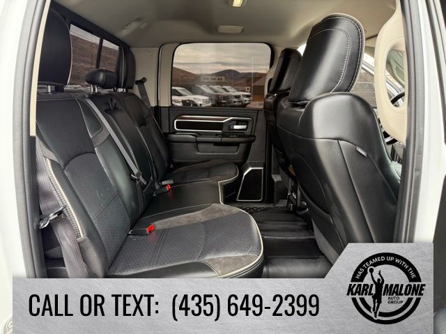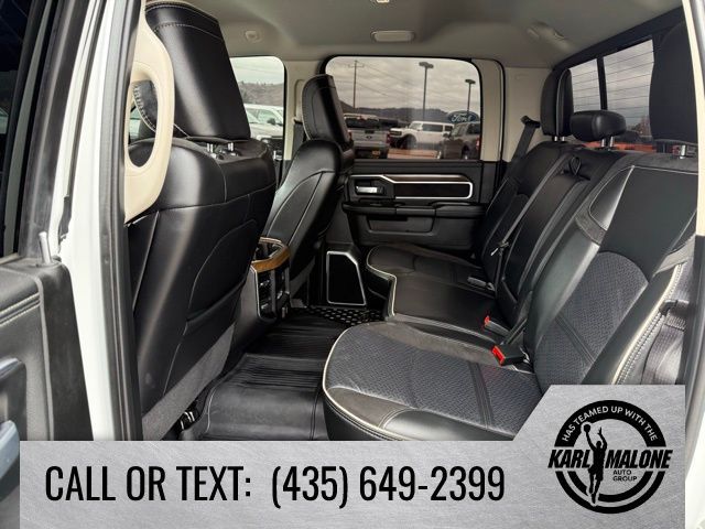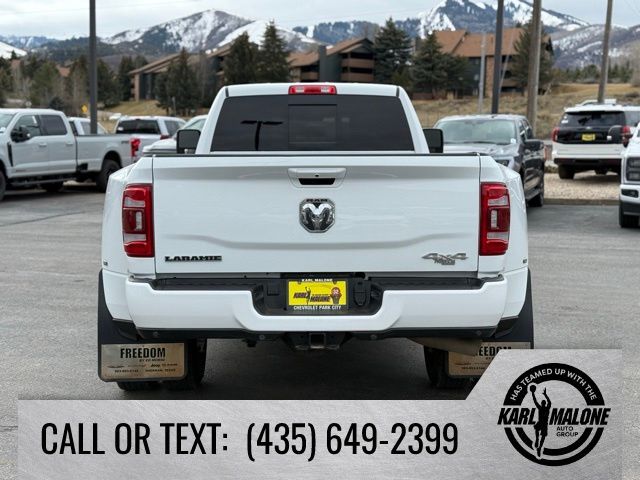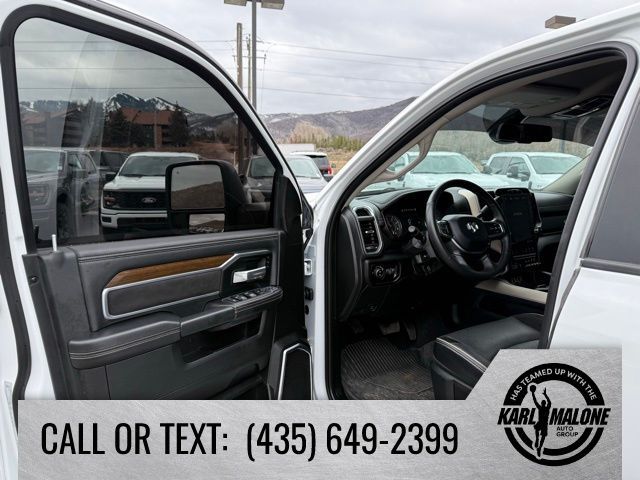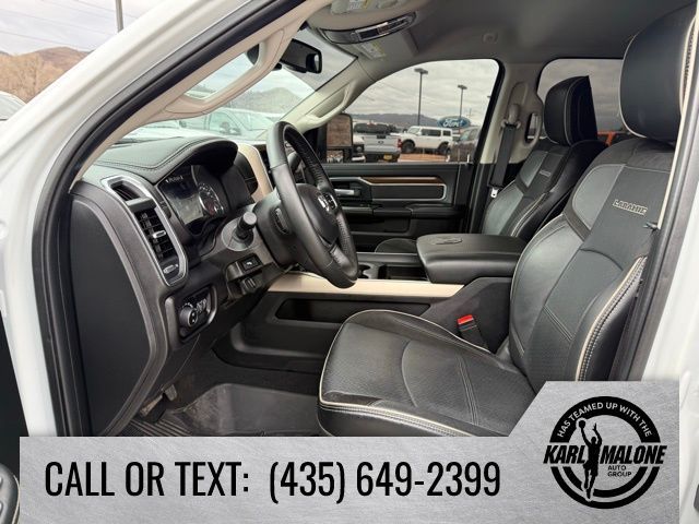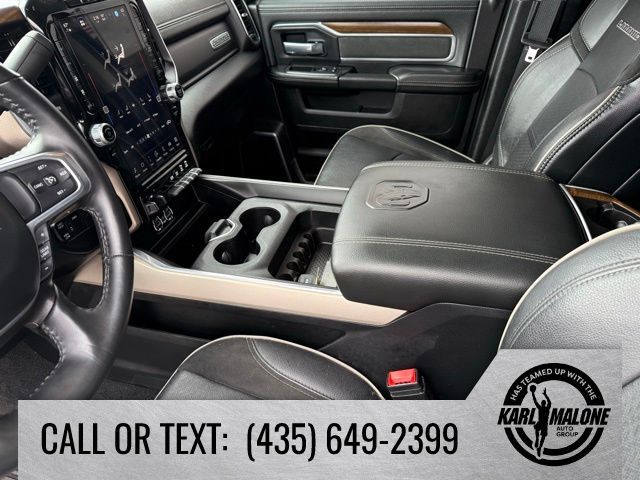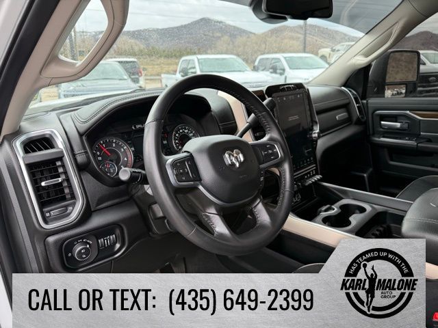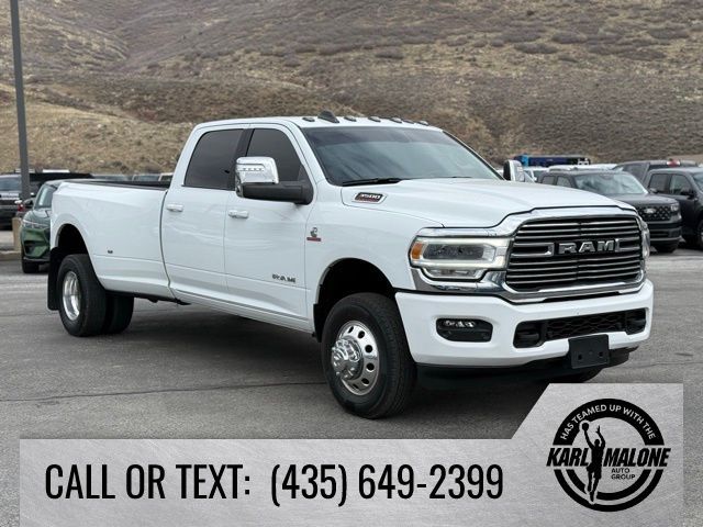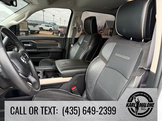 10 Speakers, 115V Auxiliary Rear Power Outlet, 12'' Touchscreen Display, 18'' x 8'' Polished Aluminum Wheels, 2 Way Rear Headrest Seat, 220 Amp Alternator, 2nd Row In Floor Storage Bins, 3.73 Axle Ratio, 4 Way Front Headrests, 4-Wheel Disc Brakes, 4G LTE Wi-Fi Hot Spot, 5th Wheel/Gooseneck Towing Prep Group, 6000# Front Axle w/Hub Ext, 8.4'' Touchscreen Display, ABS brakes, Active Noise Control System, Air Conditioning, Alexa Built-In, Alloy wheels, AM/FM radio: SiriusXM with 360L, Apple CarPlay, Apple CarPlay/Android Auto, Auto Adjust In Reverse Exterior Mirrors, Auto Dimming Exterior Passenger Mirror, Auto High Beam Headlamp Control, Auto Power-Folding Mirrors, Auto-Dimming Exterior Mirrors, Auto-dimming Rear-View mirror, Automatic temperature control, Blind Spot & Cross Path Detection, Box & Rear Fender Clearance Lamps, Brake assist, Bumpers: body-color, Center Hub, Chrome Exterior Mirrors, Clearance Lamps, Compass, Connected Travel & Traffic Services, Connectivity - US/Canada, Delay-off headlights, Disassociated Touchscreen Display, Driver door bin, Driver vanity mirror, Dual front impact airbags, Dual front side impact airbags, Dual Rear Wheels, Electronic Stability Control, Electronically Controlled Throttle, Exterior Mirrors Courtesy Lamps, Exterior Mirrors w/Heating Element, Exterior Mirrors w/Memory, Exterior Mirrors w/Supplemental Signals, Foam Bottle Insert (Door Trim Panel), Folding Flat Load Floor Storage, For Details Visit DriveUconnect.com, For More Info, Call 800-643-2112, Forward & Reverse Utility Lights, Front anti-roll bar, Front Center Armrest w/Storage, Front dual zone A/C, Front LED Fog Lamps, Front License Plate Bracket, Front reading lights, Front Seat Back Map Pockets, Fully automatic headlights, Garage door transmitter, Global Telematics Box Module (TBM), Google Android Auto, GPS Antenna Input, GPS Navigation, HD Radio, Heated door mirrors, Heated Front Seats, Heated front seats, Heated Steering Wheel, Heated steering wheel, High Back Seats, Illuminated entry, Integrated Center Stack Radio, Integrated Voice Command w/Bluetooth, Laramie Level 1 Equipment Group, Leather steering wheel, Leather Trim 40/20/40 Bench Seat, LED Reflector Headlamps, LED Tail Lamps, Low tire pressure warning, Manufacturer's Statement of Origin, Mirror Running Lights, MOPAR Front & Rear Rubber Floor Mats, MOPAR Spray In Bedliner, Navigation System, Occupant sensing airbag, Off-Road Information Pages, Outside temperature display, Overhead airbag, Overhead console, Panic alarm, ParkSense Front/Rear Park Assist System, ParkView Rear Back-Up Camera, Passenger door bin, Passenger vanity mirror, Power 8-Way Adjustable Passenger Seat, Power Adjust 8-Way Driver Seat, Power Adjust Mirrors, Power Adjustable Pedals w/Memory, Power door mirrors, Power driver seat, Power Heat Fold Memory Telescopic Mirrors, Power passenger seat, Power steering, Power Telescoping Mirrors, Power windows, Power-Adjustable Convex Aux Mirrors, Quick Order Package 2HH Laramie, Radio data system, Radio: Uconnect 5 Nav w/12.0'' Display, Radio: Uconnect 5 Nav w/8.4'' Display, Rain Sensitive Windshield Wipers, Rear 60/40 Folding Seat, Rear Power Sliding Window, Rear reading lights, Rear seat center armrest, Rear step bumper, Rear Window Defroster, Remote keyless entry, Remote Tailgate Release, Security system, Selectable Tire Fill Alert, SiriusXM Radio Service, SiriusXM w/360L, Speed control, Split folding rear seat, Steering wheel mounted audio controls, Tachometer, Tilt steering wheel, Tip Start, Traction control, Trailer Tow Pages, Trip computer, Turn signal indicator mirrors, Variably intermittent wipers, Voltmeter, Wheels: 17'' x 6.0'' Polished Aluminum, Wheels: 18'' x 8.0'' Polished Aluminum.