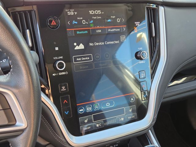 Exterior@Active grille shutters~Exterior@Bumper detail (front underguard)~Exterior@Daytime running lights (LED)~Exterior@Door handle color (body-color)~Exterior@Exhaust tip color (metallic)~Exterior@Fender lip moldings (black)~Exterior@Front bumper color (body-color)~Exterior@Front fog lights (LED)~Exterior@Front wipers (variable intermittent)~Exterior@Grille color (black with chrome accents)~Exterior@Headlight bezel color (black)~Exterior@Headlights (LED)~Exterior@Headlights (auto delay off)~Exterior@Headlights (auto high beam dimmer)~Exterior@Headlights (auto on/off)~Exterior@Headlights (cornering)~Exterior@Headlights (self-leveling)~Exterior@Headlights (wiper activated)~Exterior@Heated windshield wiper rests~Exterior@Laminated glass (acoustic windshield)~Exterior@Liftgate window (fixed)~Exterior@Mirror color (body-color)~Exterior@Power windows (safety reverse)~Exterior@Rear bumper color (body-color)~Exterior@Rear privacy glass~Exterior@Rear spoiler (roofline)~Exterior@Rear spoiler color (body-color)~Exterior@Rear trunk/liftgate (liftgate)~Exterior@Rear trunk/liftgate (power operated)~Exterior@Rear trunk/liftgate (sensor-activated)~Exterior@Rear wiper (auto-on in reverse)~Exterior@Rear wiper (intermittent)~Exterior@Rear wiper (with washer)~Exterior@Rocker panel color (black)~Exterior@Roof rack crossbars (black)~Exterior@Roof rails (black)~Exterior@Side mirror adjustments (manual folding)~Exterior@Side mirror adjustments (power)~Exterior@Side mirror adjustments (reverse gear tilt)~Exterior@Side mirrors (heated)~Exterior@Side mirrors (integrated turn signals)~Exterior@Tinted glass~Exterior@Window defogger (rear)~Exterior@Window trim (chrome)~Interior@Adaptive cruise control~Interior@Adaptive stop and go cruise control (semi-automatic)~Interior@Air filtration~Interior@Airbag deactivation (occupant sensing passenger)~Interior@Antenna type (diversity)~Interior@Antenna type (mast)~Interior@Armrests (rear center with cupholders)~Interior@Armrests (rear folding)~Interior@Assist handle (front)~Interior@Assist handle (rear)~Interior@Cargo area floor mat (rubber/vinyl)~Interior@Cargo area light~Interior@Cargo cover (retractable)~Interior@Center console (front console with armrest and storage)~Interior@Center console (illuminated)~Interior@Connected in-car apps (Google POIs)~Interior@Connected in-car apps (Google search)~Interior@Connected in-car apps (SiriusXM Travel Link)~Interior@Connected in-car apps (Yelp)~Interior@Courtesy lights (door)~Interior@Cupholders (front)~Interior@Cupholders (rear)~Interior@Dash trim (metallic)~Interior@Door sill trim (aluminum)~Interior@Door trim (leatherette)~Interior@Door trim (metallic)~Interior@Driver assistance app (roadside assistance)~Interior@Driver seat (heated)~Interior@Driver seat power adjustments (10)~Interior@Driver seat power adjustments (height)~Interior@Driver seat power adjustments (lumbar)~Interior@Driver seat power adjustments (reclining)~Interior@Electronic messaging assistance (voice operated)~Interior@Electronic messaging assistance (with read function)~Interior@Floor mat material (carpet)~Interior@Floor material (carpet)~Interior@Front air conditioning (automatic climate control)~Interior@Front air conditioning zones (dual)~Interior@Front airbags (dual)~Interior@Front headrests (2)~Interior@Front headrests (adjustable)~Interior@Front seat type (bucket)~Interior@Hands-free phone call integration (voice operated)~Interior@Infotainment (STARLINK)~Interior@Infotainment screen size (11.6 in.)~Interior@Interior accents (metallic-tone)~Interior@Internet radio app (AHA)~Interior@Internet radio app (Pandora)~Interior@Internet radio app (Stitcher)~Interior@Internet radio app (iHeartRadio)~Interior@Knee airbags (driver)~Interior@Memorized settings (2 driver)~Interior@Memorized settings (driver seat)~Interior@Memorized settings (liftgate)~Interior@Memorized settings (side mirrors)~Interior@Multi-function remote (panic alarm)~Interior@Multi-function remote (proximity entry system)~Interior@Multi-function remote (trunk release)~Interior@One-touch windows (4)~Interior@Overhead console (front)~Interior@Passenger seat (heated)~Interior@Passenger seat power adjustments (8)~Interior@Passenger seat power adjustments (reclining)~Interior@Power outlet(s) (12V cargo area)~Interior@Power outlet(s) (12V front)~Interior@Power outlet(s) (12V rear)~Interior@Power steering (variable/speed-proportional)~Interior@Power windows (lockout button)~Interior@Premium brand (harman/kardon)~Interior@Push-button start~Interior@Radio (AM/FM)~Interior@Radio (HD radio)~Interior@Radio (touch screen display)~Interior@Radio (voice operated)~Interior@Radio data system~Interior@Reading lights (front)~Interior@Reading lights (rear)~Interior@Rear headrests (3)~Interior@Rear headrests (adjustable)~Interior@Rear seat (heated)~Interior@Rear seat folding (flat)~Interior@Rear seat folding (split)~Interior@Rear seat manual adjustments (reclining)~Interior@Rear seat type (60-40 split bench)~Interior@Rear vents (second row)~Interior@Rearview mirror (auto-dimming)~Interior@Seat cushion airbags (dual front)~Interior@Shift knob trim (leather)~Interior@Side airbags (front)~Interior@Side curtain airbags (front)~Interior@Side curtain airbags (rear)~Interior@Smart device app compatibility (MySubaru)~Interior@Smart device app function (engine start)~Interior@Smart device app function (horn/light operation)~Interior@Smart device app function (lock operation)~Interior@Smart device app function (maintenance scheduling)~Interior@Smart device app function (maintenance status)~Interior@Smart device app function (vehicle location)~Interior@Smartphone integration (Android Auto)~Interior@Smartphone integration (Apple CarPlay)~Interior@Speed sensitive volume control~Interior@Steering wheel (tilt and telescopic)~Interior@Steering wheel mounted controls (audio)~Interior@Steering wheel mounted controls (cruise control)~Interior@Steering wheel mounted controls (multi-function)~Interior@Steering wheel mounted controls (pa