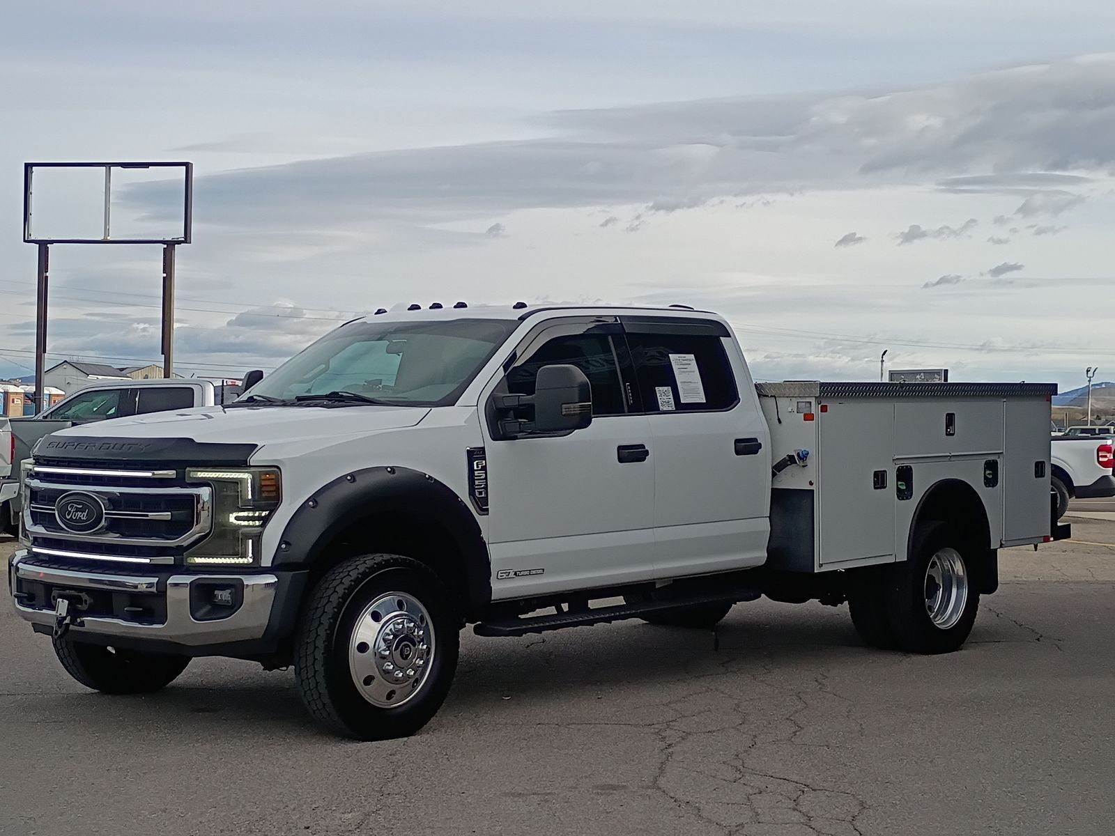 The 2022 Ford F-550 XLT 4x4 Chassis Cab is built for serious work, combining commercial-grade capability with modern comfort and technology. Powered by the legendary 6.7L Power Stroke Turbo Diesel V8 paired with a 10-speed automatic transmission, this truck delivers exceptional towing and hauling capability. Equipped with the XLT package, heated front seats, SYNC 3 infotainment, remote keyless entry, and advanced safety features like Pre-Collision Assist with Automatic Emergency Braking, it offers both productivity and comfort. This truck is also fitted with a durable CM Truck Beds utility service body, providing secure tool storage and work-ready functionality for contractors, fleets, and heavy-duty job sites.