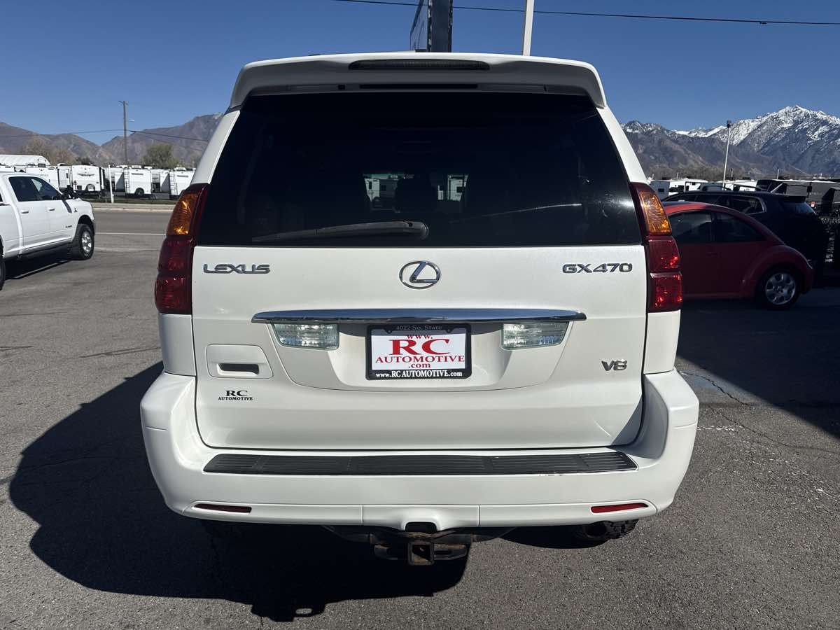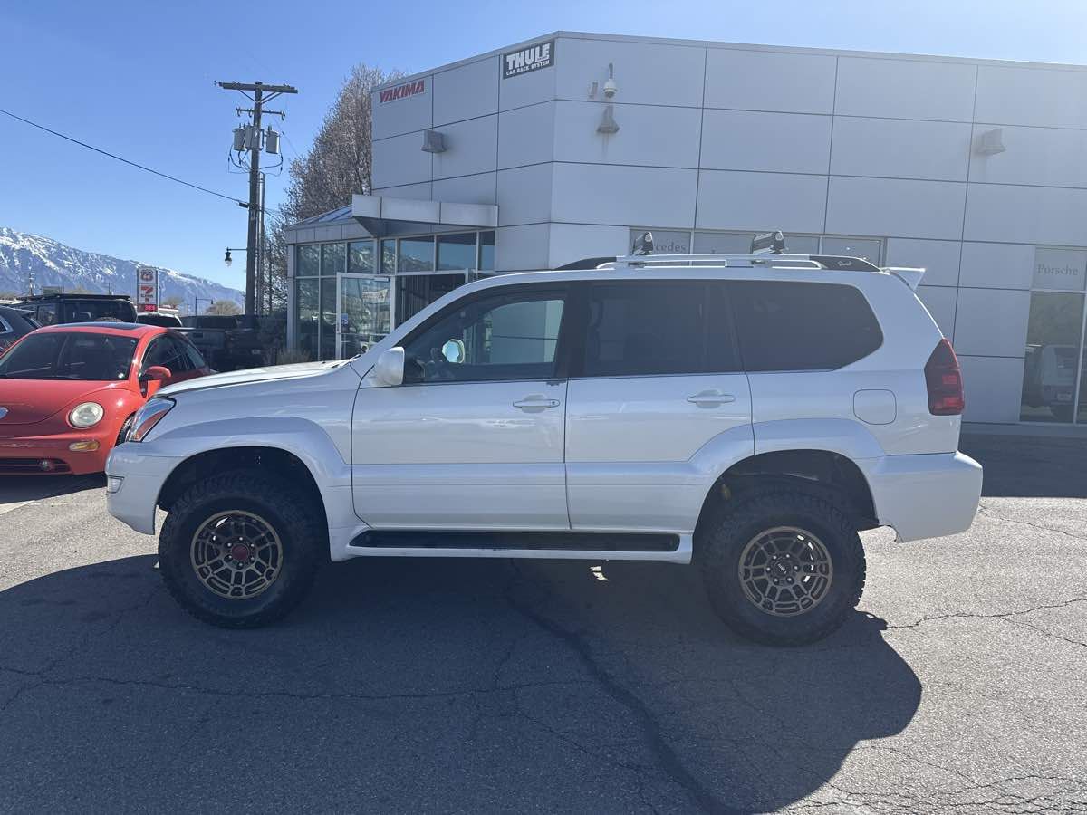 CLEAN VEHICLE HISTORY- MOONROOF- LEATHER INTERIOR- TOW PACKAGE- NEW BRAKES- NEW TIRES- FRESH OIL CHANGE- 3RD ROW SEATING- WE TAKE ALL TRADES AND WORK WITH ALL CREDIT UNIONS TO ENSURE THE BEST INTEREST RATE POSSIBLE- CALL US AT 801-268-9911 AND ONE OF OUR FRIENDLY STAFF WILL TAKE CARE OF ALL OF YOUR NEEDS- VISIT US AT WWW.RCAUTOMOTIVE.COM FOR A STRESS FREE AND ENJOYABLE PURCHASE ON YOUR FUTURE VEHICLE- OVER 10K INVESTED IN THE LAST FEW THOUSAND MILES. NEW STEERING ANGLE SNSOR- CLOCK SPRING- NEW RIDE HEIGHT SENSOR- BRAND NEW CUSTOM BUILT FRONT COIL SPRINGS AND REAR SHOCKS- SWAY BARK LINKS AND BUSHINGS- BRAND NEW MILESTAR TIRES ON TRD ALLOY WHEELS- ALIGNMENT- RADIATOR AND HOSES- FRONT/REAR BRAKES- 11 Speakers- Air Conditioning- AM/FM radio- Automatic temperature control- CD player- Front dual zone A/C- Memory seat- Power driver seat- Power moonroof- Power windows- Premium ETR AM/FM Stereo w/6-Disc CD- Rear Air Conditioner- Remote keyless entry- Steering wheel memory- Steering wheel mounted audio controls- Third Row Seat. Clean CARFAX. 2003 Lexus GX 470 White 4WD 5-Speed Automatic with Overdrive 4.7L V8 SMPI DOHC