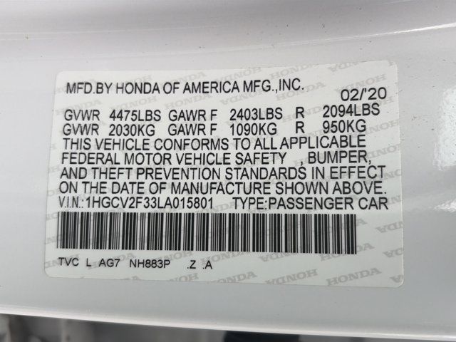 Elevate your driving experience with this stunning 2020 Honda Accord Sport 2.0T. Boasting a potent turbocharged engine, sleek exterior styling, and an array of cutting-edge features, this Accord is poised to exceed your expectations.Highlighted by its - 8 Speakers, AM/FM radio: SiriusXM, Radio data system, Radio: 180-Watt AM/FM/HD/SiriusXM Audio System, Air Conditioning, Automatic temperature control, Front dual zone A/C, Rear window defroster, Power driver seat, Power steering, Power windows, Remote keyless entry, Steering wheel mounted audio controls, Four wheel independent suspension, Speed-sensing steering, Traction control, 4-Wheel Disc Brakes, ABS brakes, Dual front impact airbags, Dual front side impact airbags, Emergency communication system: HondaLink, Front anti-roll bar, Knee airbag, Low tire pressure warning, Occupant sensing airbag, Overhead airbag, Rear anti-roll bar, Power moonroof, Blind Spot Information (BSI) System warning, Brake assist, Electronic Stability Control, Forward collision: Collision Mitigation Braking System (CMBS) FCW mitigation, Lane Departure Warning System, Exterior Parking Camera Rear, Auto High-beam Headlights, Delay-off headlights, Front fog lights, Fully automatic headlights, Panic alarm, Security system, Adaptive Cruise Control: Adaptive Cruise Control (ACC) with Low-Speed Follow, Speed control, Bumpers: body-color, Heated door mirrors, Power door mirrors, Spoiler, Apple CarPlay/Android Auto, Cloth Seat Trim, Driver door bin, Driver vanity mirror, Front reading lights, Illuminated entry, Leather Shift Knob, Leather steering wheel, Outside temperature display, Overhead console, Passenger vanity mirror, Rear seat center armrest, Tachometer, Telescoping steering wheel, Tilt steering wheel, Trip computer, Front Bucket Seats, Front Center Armrest, Heated Front Bucket Seats, Heated front seats, Split folding rear seat, Passenger door bin, Alloy wheels, Wheels: 19 Machine-Finished Alloy w/Black Inserts, Speed-Sensitive Wipers, Variably intermittent wipers - this Accord Sport 2.0T is a true standout in its class.The turbocharged 2.0-liter I4 engine under the hood delivers an exhilarating 252 horsepower, mated to a smooth-shifting 10-speed automatic transmission. This powertrain provides a dynamic and responsive driving experience, with the ability to effortlessly merge onto highways and confidently tackle winding roads. Fuel efficiency is also impressive, with an EPA-estimated 22 city/32 highway mpg.The exterior of the Accord Sport 2.0T is defined by its sleek, aerodynamic lines and bold styling cues. The 19-inch alloy wheels with black inserts, coupled with the sporty rear spoiler, give this sedan a commanding presence on the road. The available LED headlights and taillights not only enhance the vehicle's aesthetic but also improve visibility and safety.Step inside the Accord Sport 2.0T, and you'll be greeted by a well-appointed, driver-focused cabin. The heated front seats, dual-zone automatic climate control, and leather-wrapped steering wheel and shift knob provide a premium feel and exceptional comfort. The 180-watt audio system, complete with SiriusXM radio and Apple CarPlay/Android Auto integration, ensures you'll enjoy your favorite tunes during every drive.Safety is also a top priority, with the Accord Sport 2.0T boasting a comprehensive suite of advanced driver-assistance technologies. Features like the Collision Mitigation Braking System, Lane Departure Warning, and Adaptive Cruise Control with Low-Speed Follow work together to help keep you and your passengers secure on the road.Whether you're seeking a dynamic daily commuter or a versatile family sedan, this 2020 Honda Accord Sport 2.0T is an exceptional choice. Experience the perfect blend of style, performance, and technology by scheduling a test drive today.