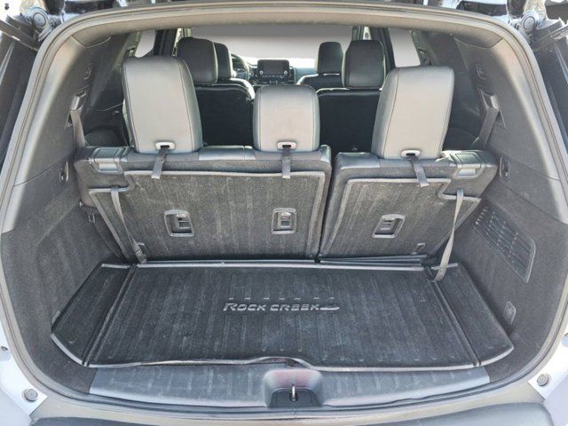 [L94] ROCK CREEK AS FLOOR LINERS & CARGO AREA PROTECTOR,CHARCOAL LEATHERETTE-APPOINTED SEATING SURFACES -inc: unique centers and stitching,SOLID GRAY/SUPER BLACK,[B92] BLACK SPLASH GUARDS (SET OF 4),[K11] ROCK CREEK ROOF RACK,Smart Device Integration,Requires Subscription,Four Wheel Drive,Tow Hitch,Power Steering,ABS,4-Wheel Disc Brakes,Brake Assist,Brake Actuated Limited Slip Differential,Aluminum Wheels,Tires - Front All-Terrain,Tires - Rear All-Terrain,Temporary Spare Tire,Heated Mirrors,Power Mirror(s),Integrated Turn Signal Mirrors,Rear Defrost,Privacy Glass,Intermittent Wipers,Variable Speed Intermittent Wipers,Rear Spoiler,Power Door Locks,Luggage Rack,Daytime Running Lights,Automatic Headlights,LED Headlights,Automatic Highbeams,Fog Lamps,AM/FM Stereo,Satellite Radio,MP3 Capability,Bluetooth Connection,Auxiliary Audio Input,Smart Device Integration,Requires Subscription,MP3 Capability,Steering Wheel Audio Controls,Bluetooth Connection,Power Driver Seat,Bucket Seats,Heated Front Seat(s),Driver Adjustable Lumbar,Bucket Seats,Rear Bucket Seats,Adjustable Steering Wheel,Trip Computer,Power Windows,WiFi Hotspot,3rd Row Seat,Leather Steering Wheel,Keyless Entry,Power Door Locks,Keyless Start,Keyless Entry,Power Door Locks,Cruise Control,Adaptive Cruise Control,Climate Control,Multi-Zone A/C,A/C,A/C,Rear A/C,Cloth Seats,Premium Synthetic Seats,Driver Vanity Mirror,Passenger Vanity Mirror,Driver Illuminated Vanity Mirror,Passenger Illuminated Visor Mirror,Smart Device Integration,Remote Engine Start,Keyless Start,Power Windows,Power Door Locks,Trip Computer,Security System,Immobilizer,Cruise Control Steering Assist,Traction Control,Stability Control,Traction Control,Front Side Air Bag,Rear Parking Aid,Cross-Traffic Alert,Rear Collision Mitigation,Front Collision Mitigation,Driver Monitoring,Telematics,Requires Subscription,Blind Spot Monitor,Lane Departure Warning,Lane Keeping Assist,Lane Departure Warning,Aerial View Display System,Tire Pressure Monitor,Driver Air Bag,Passenger Air Bag,Front Head Air Bag,Rear Head Air Bag,Passenger Air Bag Sensor,Front Side Air Bag,Rear Side Air Bag,Knee Air Bag,Child Safety Locks,Driver Restriction Features,Back-Up Camera