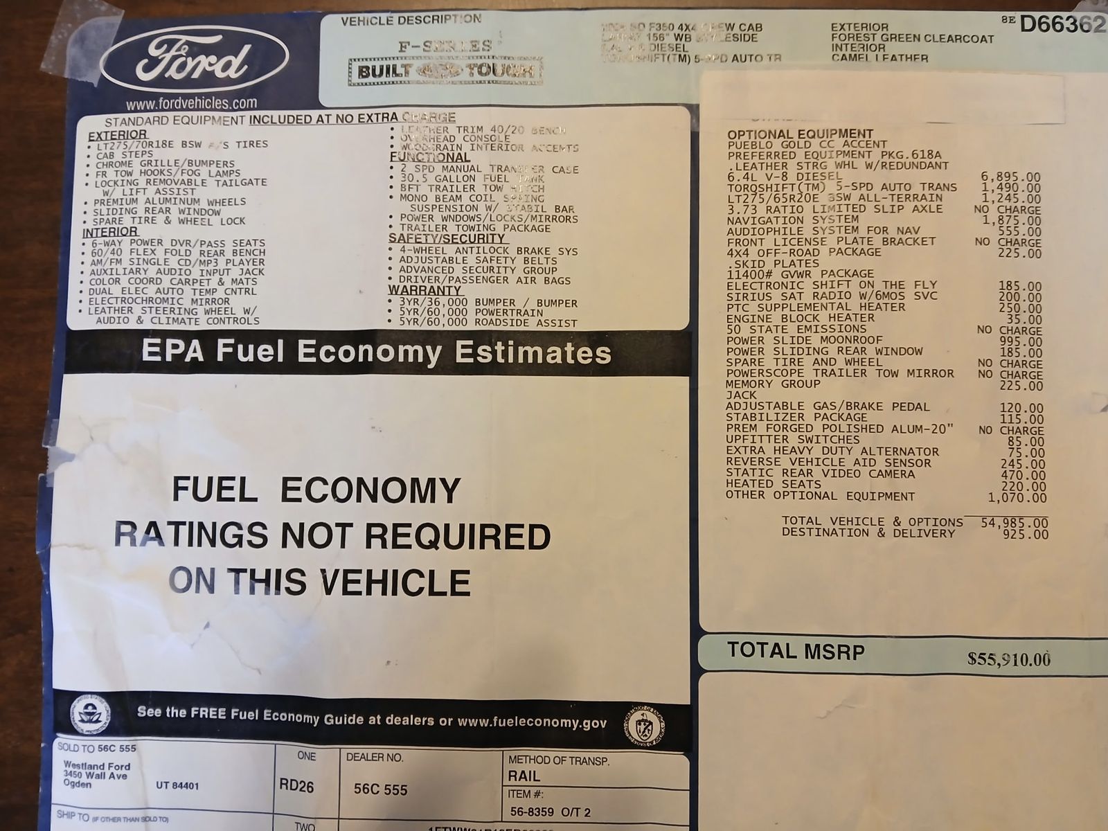 SEE WINDOW STICKER (IN PHOTOS) FOR INCLUDED FEATURES.