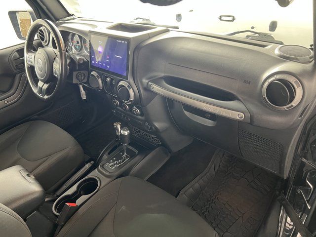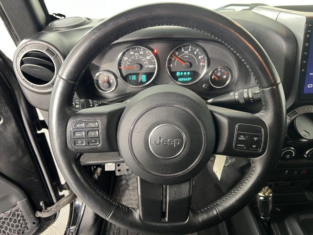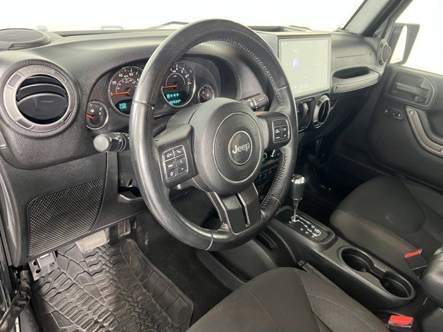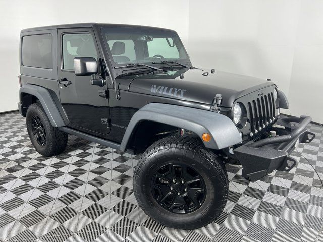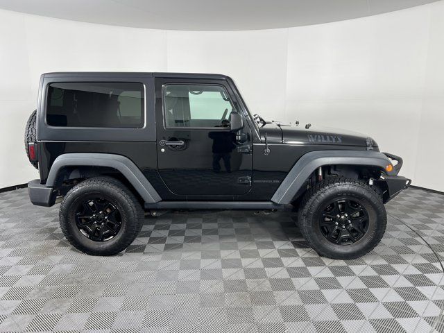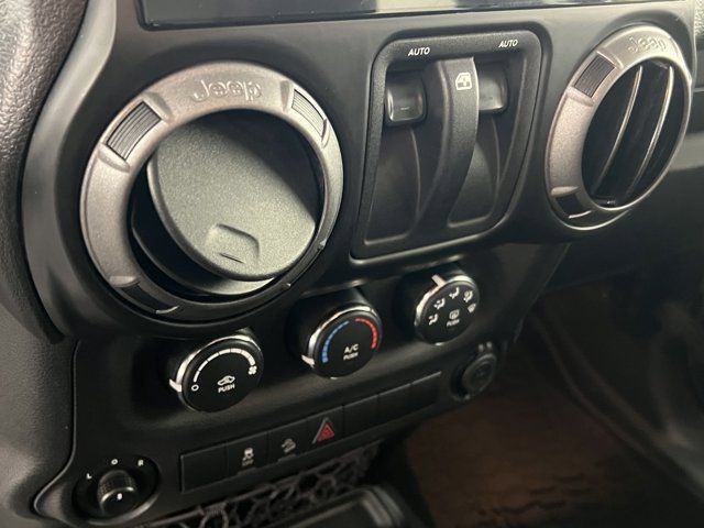 BLACK CLOTH SEATS W/ADJUSTABLE HEAD RESTRAINTS,POWER CONVENIENCE GROUP -inc: Auto Dim Mirror w/Reading Lamp Front 1-Touch Down Power Windows Power Heated Mirrors Security Alarm Power Locks Remote Keyless Entry,ENGINE: 3.6L V6 24V VVT (STD),BLACK 3-PIECE HARD TOP -inc: Freedom Panel Storage Bag Rear Window Defroster Rear Window Wiper/Washer Delete Sunrider Soft Top,QUICK ORDER PACKAGE 24W WILLYS WHEELER -inc: Engine: 3.6L V6 24V VVT Transmission: 5-Speed Automatic (W5A580) Rear Passenger Assist Handles Kit Willys Wheeler Package Black Jeep Grille Badge 1-Yr SiriusXM Radio Service For More Info Call 888-539-7474 Air Conditioning Vehicle Information Center Remote USB Port Uconnect Voice Command w/Bluetooth Leather Wrapped Steering Wheel Chrome/Leather Wrapped Shift Knob Tire Pressure Monitoring Display 4-Wheel Drive Swing Gate Decal Willys Wheeler Grille Willys Hood Decal Rock Rails,BLACK CLEARCOAT,AIR CONDITIONING,TRANSMISSION: 5-SPEED AUTOMATIC (W5A580) -inc: Tip Start Hill Descent Control,Four Wheel Drive,Locking/Limited Slip Differential,Power Steering,ABS,4-Wheel Disc Brakes,Brake Assist,Aluminum Wheels,Tires - Front All-Terrain,Tires - Rear All-Terrain,Conventional Spare Tire,Tow Hooks,Tow Hooks,Intermittent Wipers,Variable Speed Intermittent Wipers,Privacy Glass,Rollover Protection Bars,Convertible Soft Top,Fog Lamps,AM/FM Stereo,CD Player,MP3 Capability,Steering Wheel Audio Controls,Satellite Radio,Requires Subscription,Rear Bench Seat,Adjustable Steering Wheel,Trip Computer,Cruise Control,Cloth Seats,Bucket Seats,Driver Vanity Mirror,Passenger Vanity Mirror,Floor Mats,Trip Computer,Immobilizer,Traction Control,Stability Control,Traction Control,Driver Air Bag,Passenger Air Bag,Passenger Air Bag Sensor