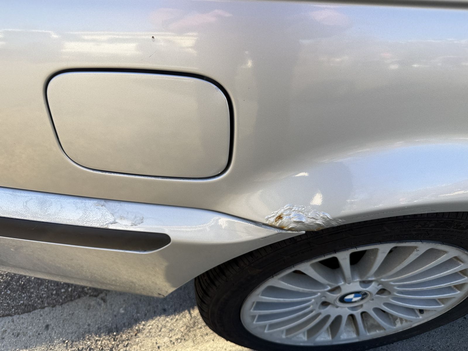 Exterior: Silver; rust on rear fender; dent in the nose of the hood, some clearcoat fading