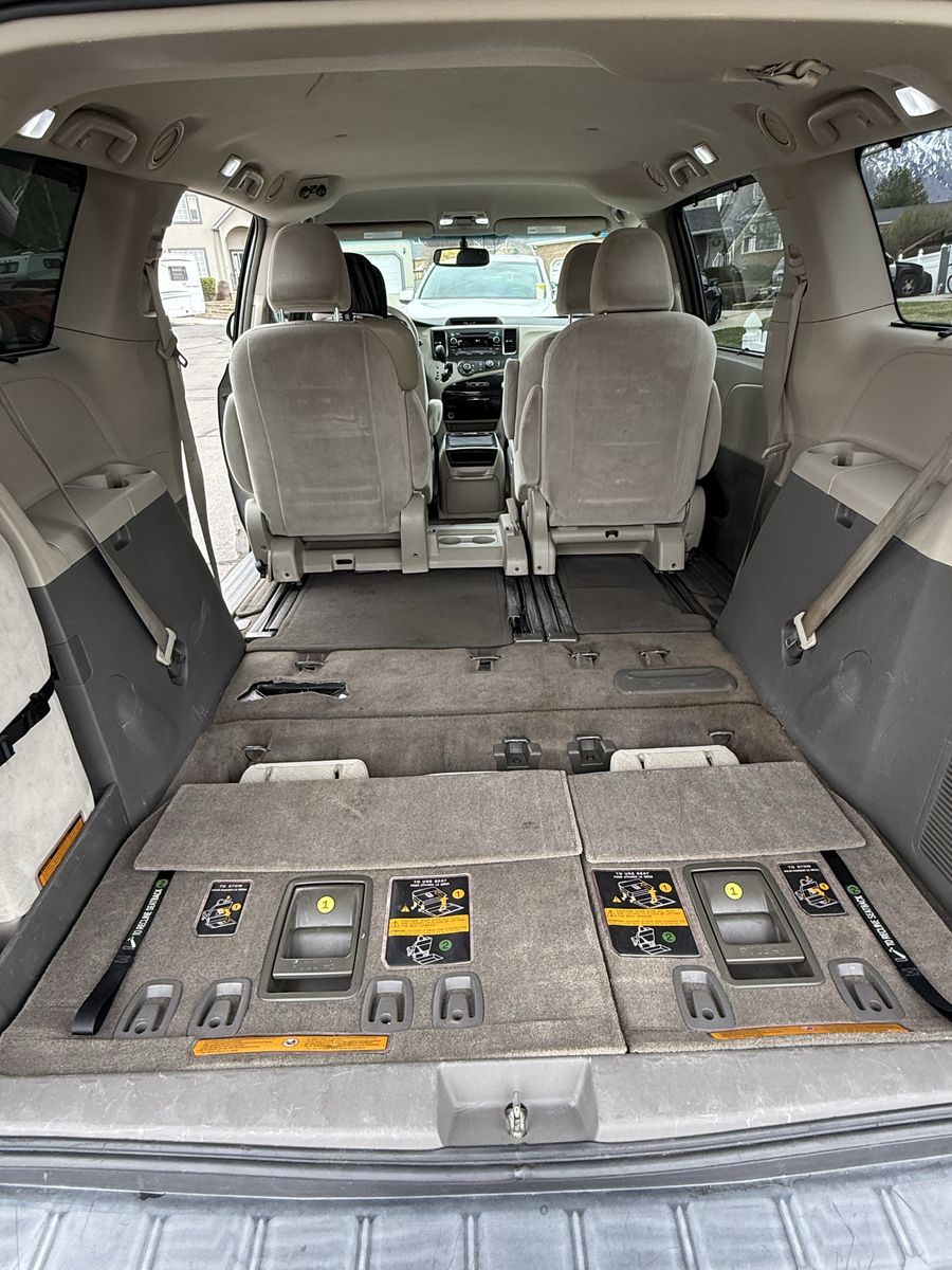 This van is the road trip QUEEN. I’ve taken it to L.A., Seattle, Eastern Washington, Zion NP, Bryce Canyon, sometimes with all eight passengers, but everyone’s comfy because of that amazing trunk space storing all the luggage and the roof racks. It drives so smoothly; the seats all recline so the passengers can rest, and it gets around 25 mpg on the freeway. And! 14 cupholders!