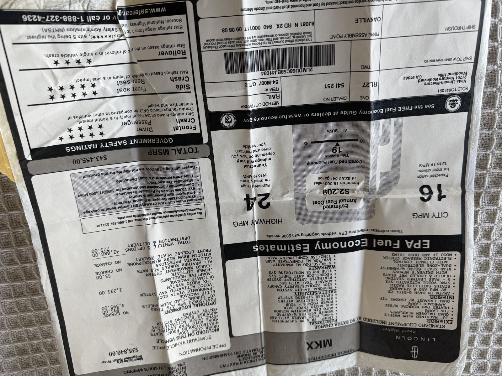 2008 Lincoln MKX – Beautiful, 1-owner car - always garaged and exclusively factory/dealer serviced. 169k mostly freeway miles. Black clearcoat exterior, Camel Premium interior. 3.5L v-6 (regular not premium fuel) with automatic FWD O/D transmission. This has been an extraordinarily reliable vehicle. Looks and runs as close to a new car as you could ever expect of a pre-owned vehicle. Tires, battery, drive belt, front-end suspension components, all recently changed – no squeaks, creaks or rattles. Wireless Sony Apple Car Play/Android Entertainment Center with color back up camera, Elite Package (20” chrome-clad wheels, Panoramic Roof, adaptive quad halogen headlights, power liftgate), fog lamps, heated power mirrors, heated and cooled driver’s and front passenger’s seating. This is Lincoln's luxury version of a Ford Edge - still looks current and expensive. Bought another new Lincoln SUV so we’re reluctantly selling this one. Private Party. No dealers/consignment offers please. $6,000.00. Located in Washington, Utah.