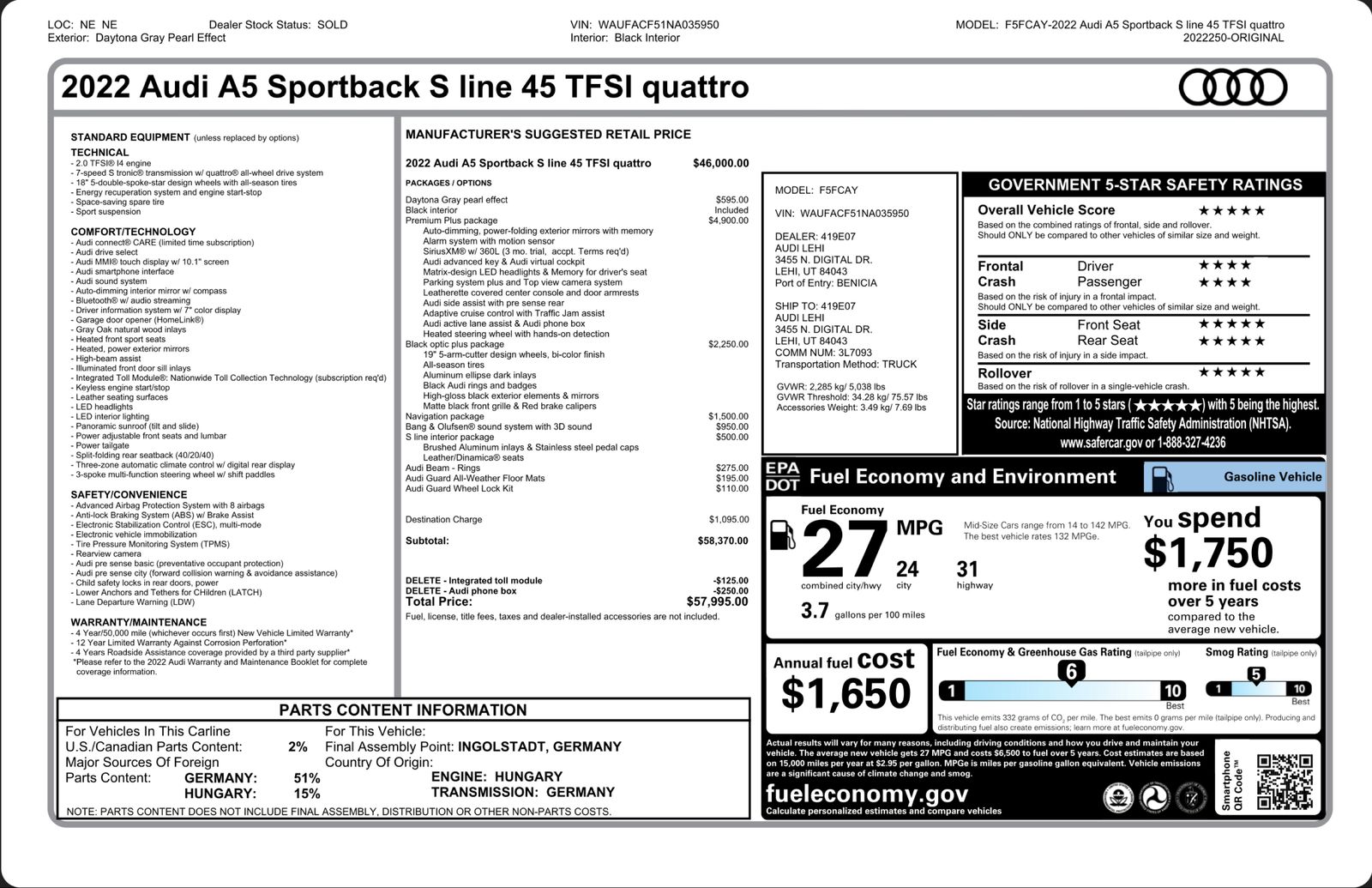 2022 Audi A5 Sportback