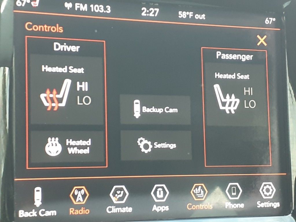 Quick Order Package 26G,9 Amplified Speakers with Subwoofer,Power liftgate rear cargo door,Apple CarPlay/Android Auto smart device mirroring,Blind Spot Monitoring System,Keyfob remote engine start,Heated steering wheel,Uconnect w/Bluetooth handsfree wireless device connectivity,Leather front seat upholstery,Driver seat with 8-way directional controls,Front passenger seat with 8-way directional controls,3 USB ports,Keyfob trunk control,8.4 inch primary LCD display,ParkView rear mounted camera,Cross Path Detection collision mitigation,Brake assist system,Cruise control with steering wheel mounted controls,Heated driver and front passenger seats,Primary monitor touchscreen,Driver seat power reclining, lumbar support, cushion tilt, fore/aft control and height adjustable control,Jeep Active Drive I automatic full-time 4WD,Pentastar 3.2L V-6 DOHC, regular unleaded, engine with 271HP,Keyless Go with hands-free access and push button start,Bluetooth wireless audio streaming,Dual-zone front climate control,Sentry Key immobilizer,Trailer sway control,Uconnect external memory control,Internet radio capability,Digital/analog instrumentation display,Configurable instrumentation gauges,Chrome rear bumper insert,Electronic stability control system with anti-roll,Hill start assist,Leather rear seat upholstery,Automatic climate control,ParkSense with Stop rear parking sensors,LED daytime running lights,Front cornering lights,LED brake lights,3 12V power outlets,LED front fog lights,Leather and metal-look steering wheel,Manual reclining rear seats,Active grille shutters,Manual rear child safety door locks,Heated driver and passenger side door mirrors,Manual tilting steering wheel,Manual telescopic steering wheel,Auto stop-start engine,Capless fuel filler