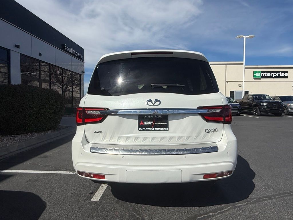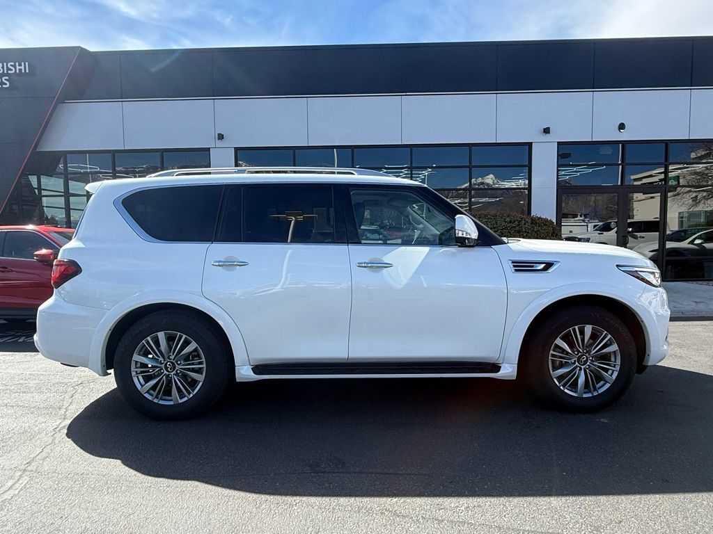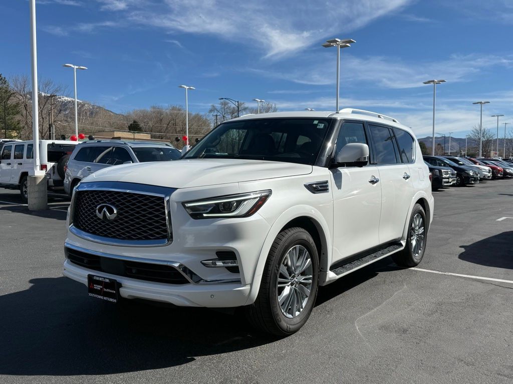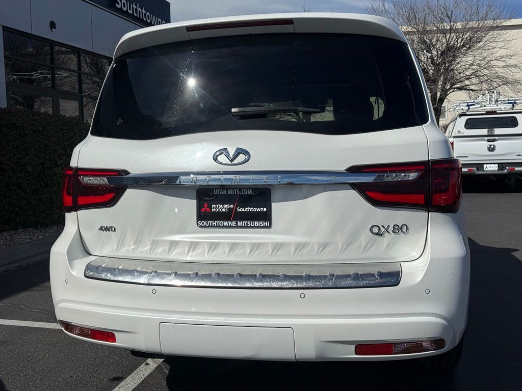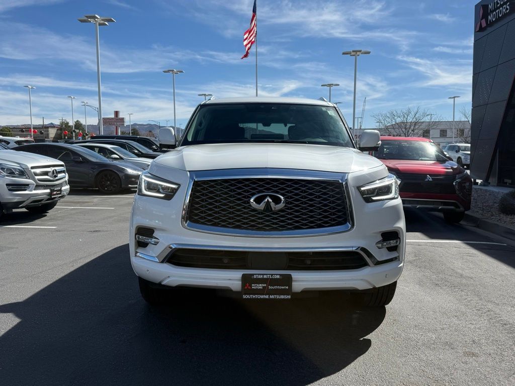 Moonstone White 5.6L V8 4WD INFINITI QX80 13/19 City/Highway MPG