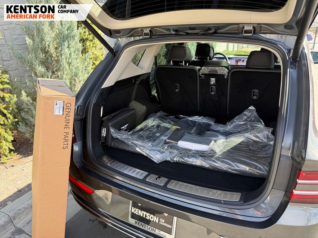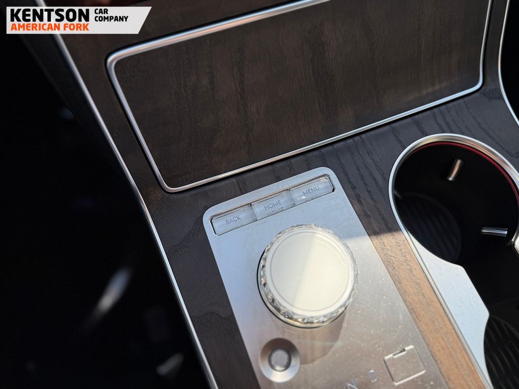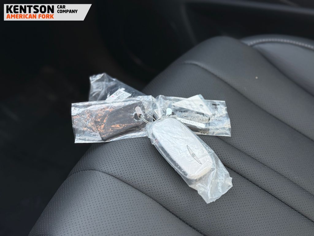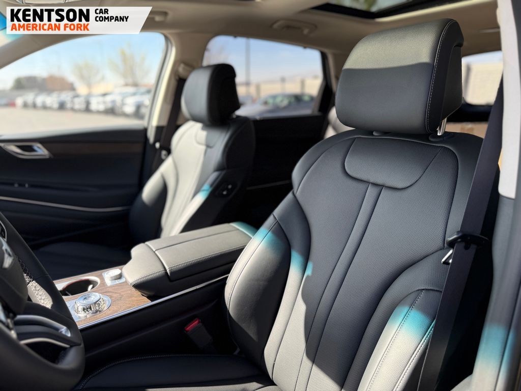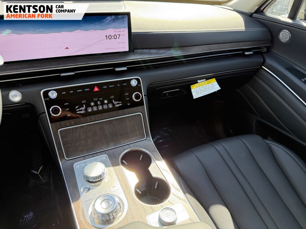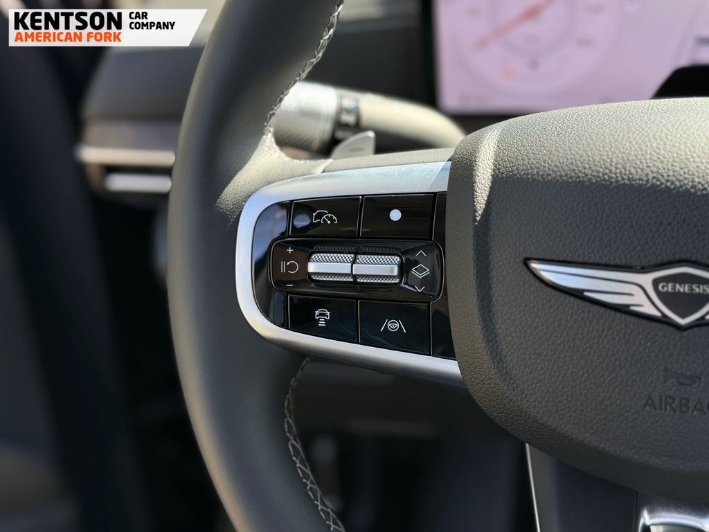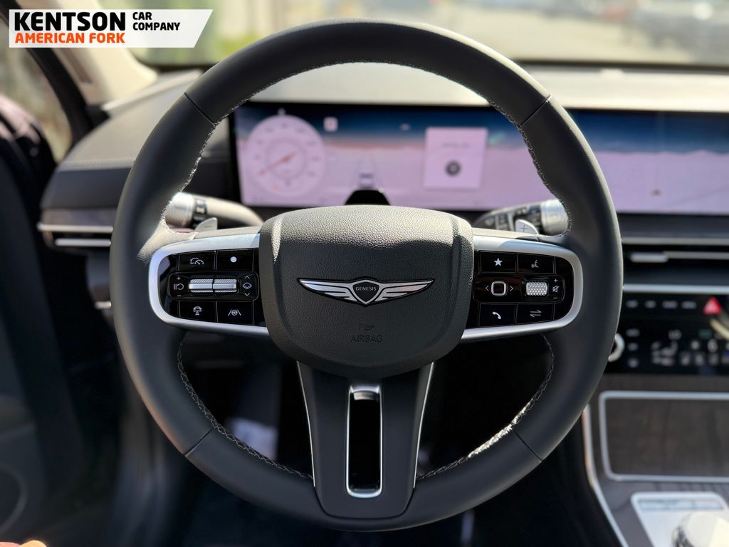 Option Group 01, 12 Speakers, 4-Wheel Disc Brakes, ABS brakes, Air Conditioning, Alloy wheels, AM/FM radio: SiriusXM, Anti-whiplash front head restraints, Auto High-beam Headlights, Auto tilt-away steering wheel, Auto-dimming door mirrors, Auto-dimming Rear-View mirror, Auto-leveling suspension, Automatic temperature control, Brake assist, Bumpers: body-color, Cargo Net, Cargo Tray, Compass, Delay-off headlights, Driver door bin, Driver vanity mirror, Dual front impact airbags, Dual front side impact airbags, Electronic Stability Control, Emergency communication system: Genesis Connected Services, Exterior Parking Camera Rear, First Aid Kit, Four wheel independent suspension, Fragrance Cartridge, Front & Rear Mudguards, Front anti-roll bar, Front Bucket Seats, Front Center Armrest, Front dual zone A/C, Front reading lights, Fully automatic headlights, Garage door transmitter: HomeLink, Genuine wood console insert, Genuine wood dashboard insert, Genuine wood door panel insert, Heated door mirrors, Heated Front Bucket Seats, Heated front seats, Heated steering wheel, Illuminated entry, Knee airbag, Leather steering wheel, Leatherette Seating Surfaces, Low tire pressure warning, Memory seat, Navigation System, NFC Key Card, Occupant sensing airbag, Outside temperature display, Overhead airbag, Overhead console, Panic alarm, Passenger door bin, Passenger vanity mirror, Power door mirrors, Power driver seat, Power Liftgate, Power moonroof, Power passenger seat, Power steering, Power windows, Radio data system, Radio: AM/FM/SiriusXM/HD, Rain sensing wipers, Rear air conditioning, Rear anti-roll bar, Rear reading lights, Rear seat center armrest, Rear side impact airbag, Rear window defroster, Rear window wiper, Remote keyless entry, Roadside Assistance Kit, Security system, Speed control, Speed-sensing steering, Speed-Sensitive Wipers, Split folding rear seat, Spoiler, Steering wheel memory, Steering wheel mounted audio controls, Tachometer, Telescoping steering wheel, Tilt steering wheel, Traction control, Trip computer, Turn signal indicator mirrors, Variably intermittent wipers, and Wheels: 20'' x 8.5J Dark Gray Matte Alloy.