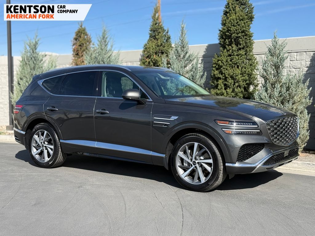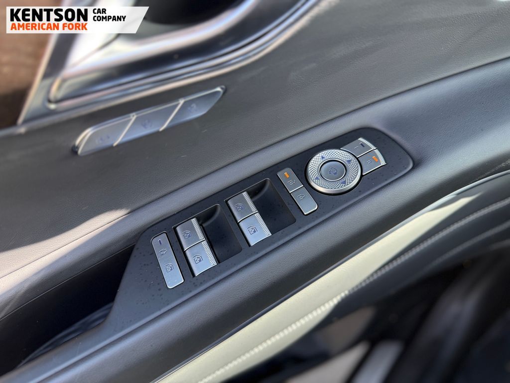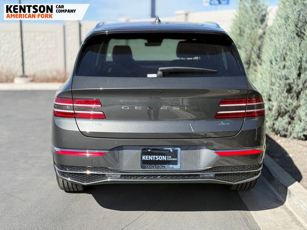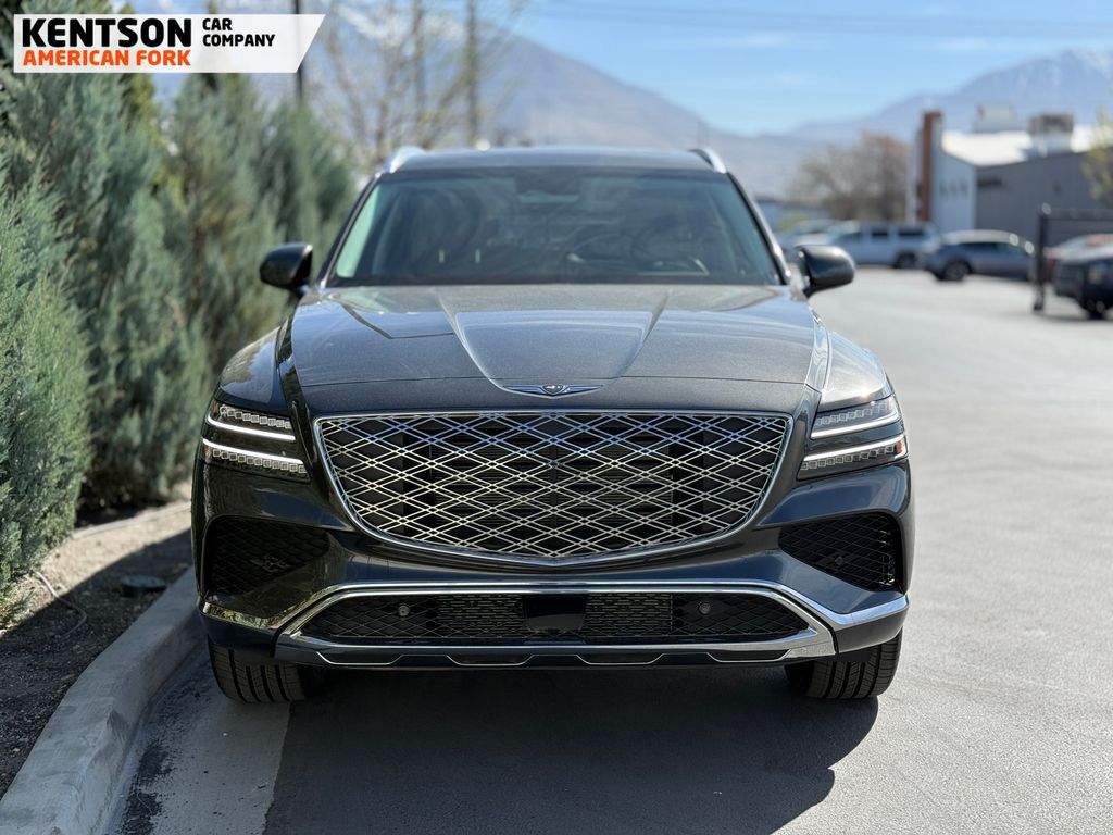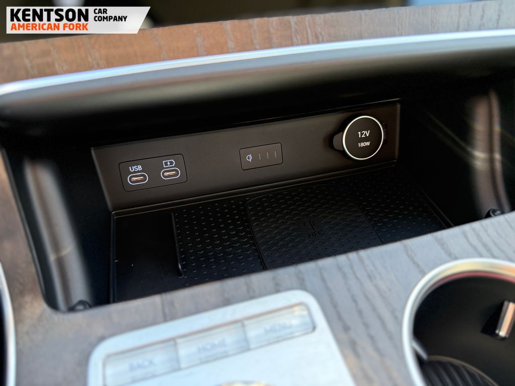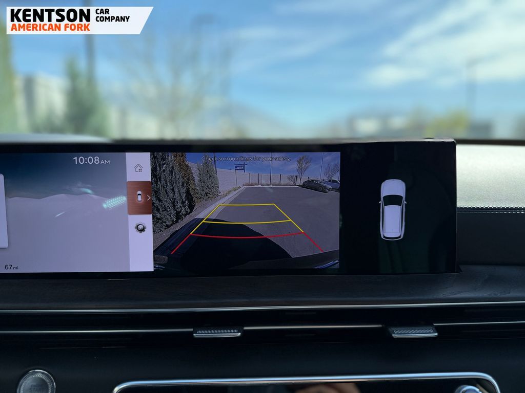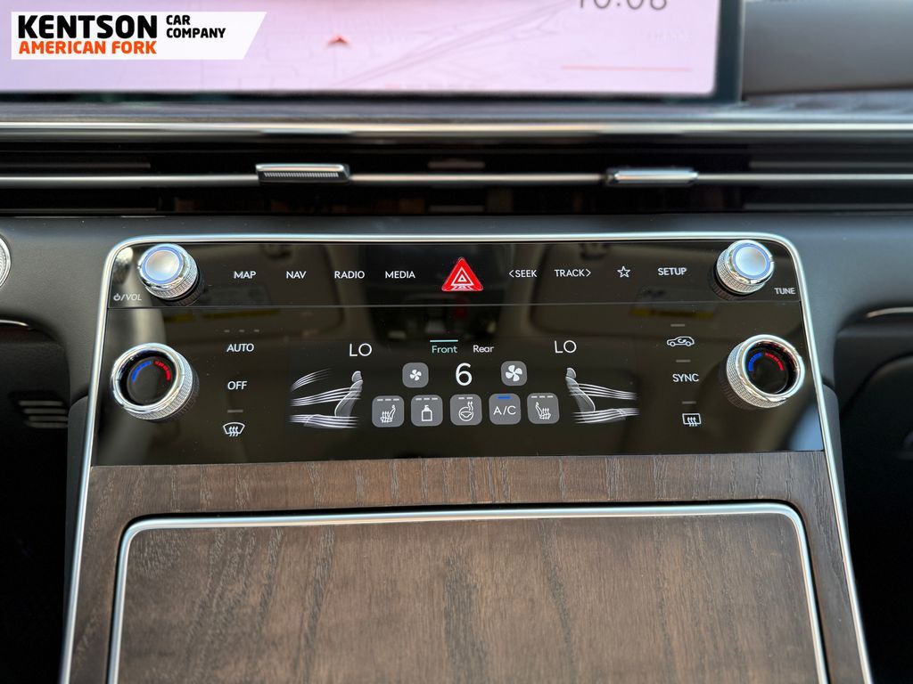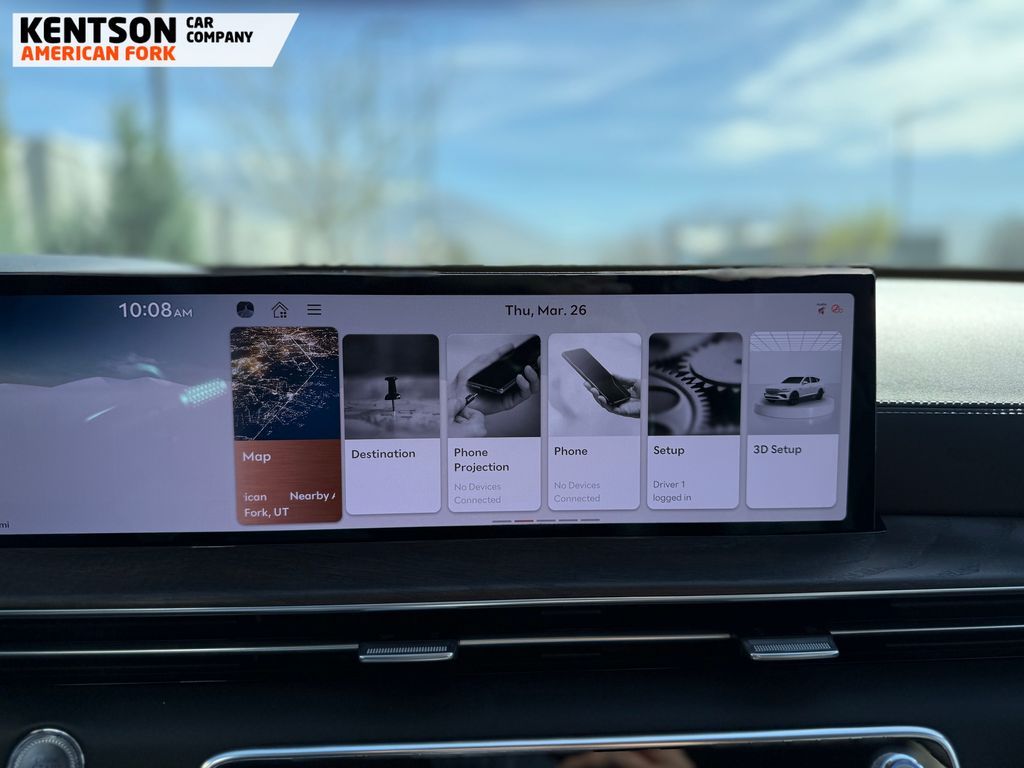 Option Group 01, 12 Speakers, 4-Wheel Disc Brakes, ABS brakes, Air Conditioning, Alloy wheels, AM/FM radio: SiriusXM, Anti-whiplash front head restraints, Auto High-beam Headlights, Auto tilt-away steering wheel, Auto-dimming door mirrors, Auto-dimming Rear-View mirror, Auto-leveling suspension, Automatic temperature control, Brake assist, Bumpers: body-color, Cargo Net, Cargo Tray, Compass, Delay-off headlights, Driver door bin, Driver vanity mirror, Dual front impact airbags, Dual front side impact airbags, Electronic Stability Control, Emergency communication system: Genesis Connected Services, Exterior Parking Camera Rear, First Aid Kit, Four wheel independent suspension, Fragrance Cartridge, Front & Rear Mudguards, Front anti-roll bar, Front Bucket Seats, Front Center Armrest, Front dual zone A/C, Front reading lights, Fully automatic headlights, Garage door transmitter: HomeLink, Genuine wood console insert, Genuine wood dashboard insert, Genuine wood door panel insert, Heated door mirrors, Heated Front Bucket Seats, Heated front seats, Heated steering wheel, Illuminated entry, Knee airbag, Leather steering wheel, Leatherette Seating Surfaces, Low tire pressure warning, Memory seat, Navigation System, NFC Key Card, Occupant sensing airbag, Outside temperature display, Overhead airbag, Overhead console, Panic alarm, Passenger door bin, Passenger vanity mirror, Power door mirrors, Power driver seat, Power Liftgate, Power moonroof, Power passenger seat, Power steering, Power windows, Radio data system, Radio: AM/FM/SiriusXM/HD, Rain sensing wipers, Rear air conditioning, Rear anti-roll bar, Rear reading lights, Rear seat center armrest, Rear side impact airbag, Rear window defroster, Rear window wiper, Remote keyless entry, Roadside Assistance Kit, Security system, Speed control, Speed-sensing steering, Speed-Sensitive Wipers, Split folding rear seat, Spoiler, Steering wheel memory, Steering wheel mounted audio controls, Tachometer, Telescoping steering wheel, Tilt steering wheel, Traction control, Trip computer, Turn signal indicator mirrors, Variably intermittent wipers, and Wheels: 20'' x 8.5J Dark Gray Matte Alloy.